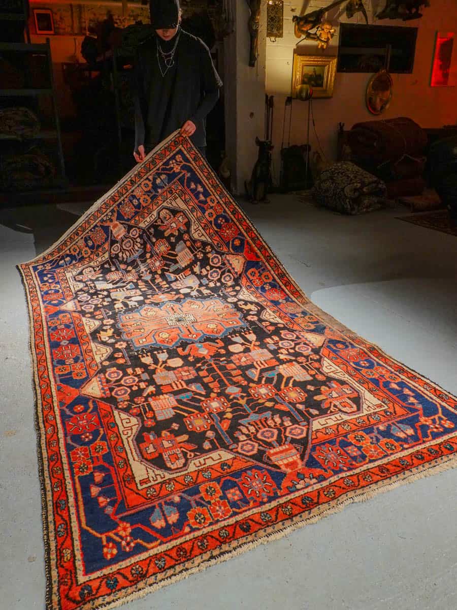 Tämä matto sijaitsee Galleriallamme osoitteessa Kankurinkatu 7, Punavuori – jos haluat tulla katsomaan sitä paikan päälle, sovithan näytön viestitse tai puhelimitse.