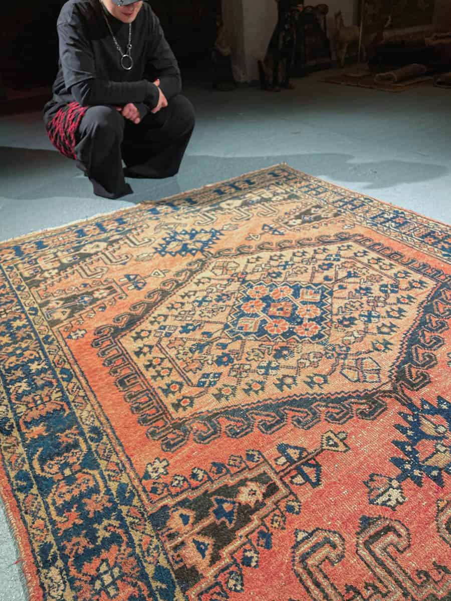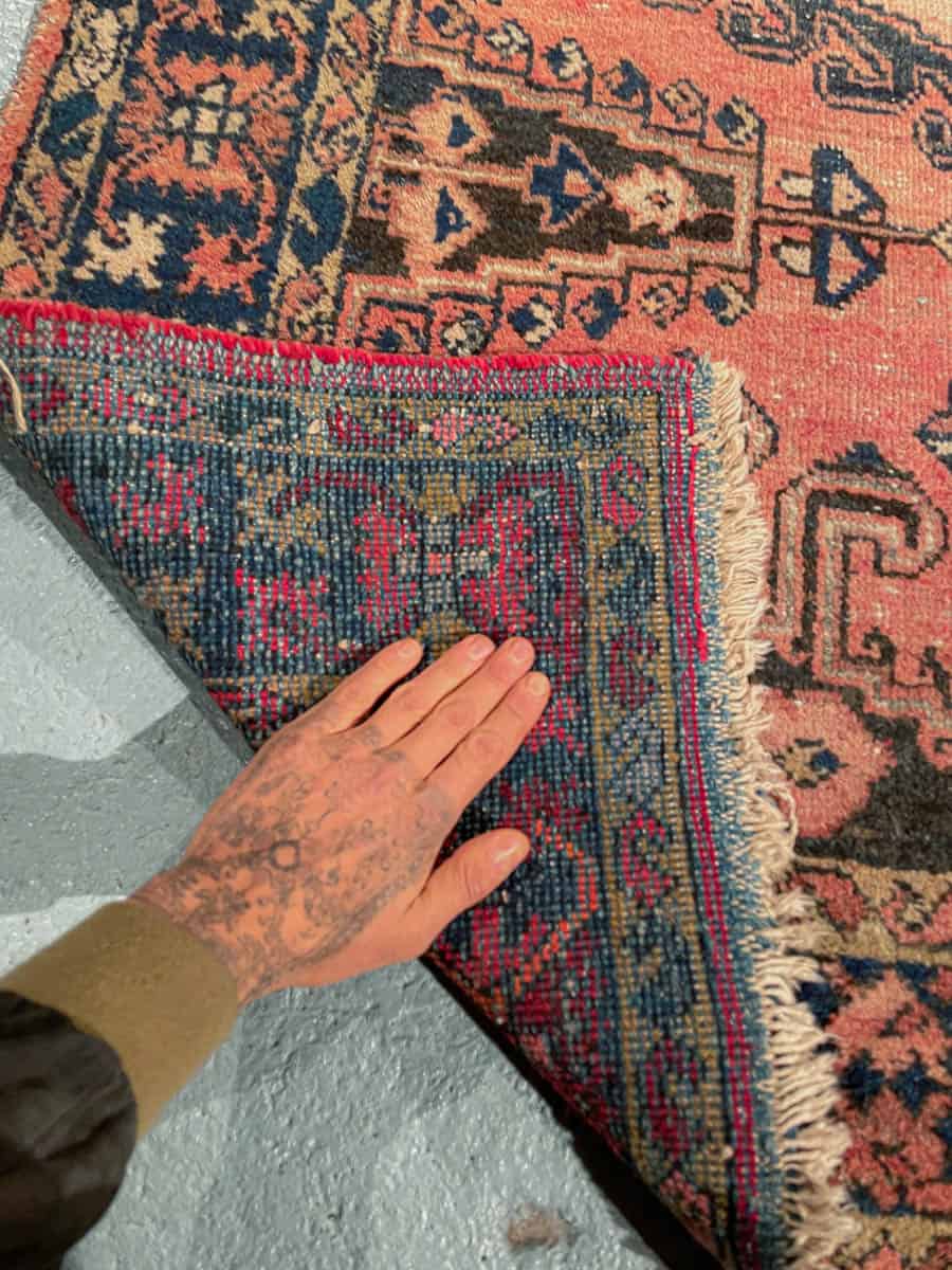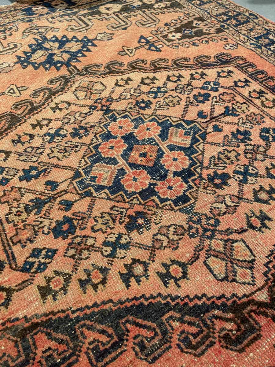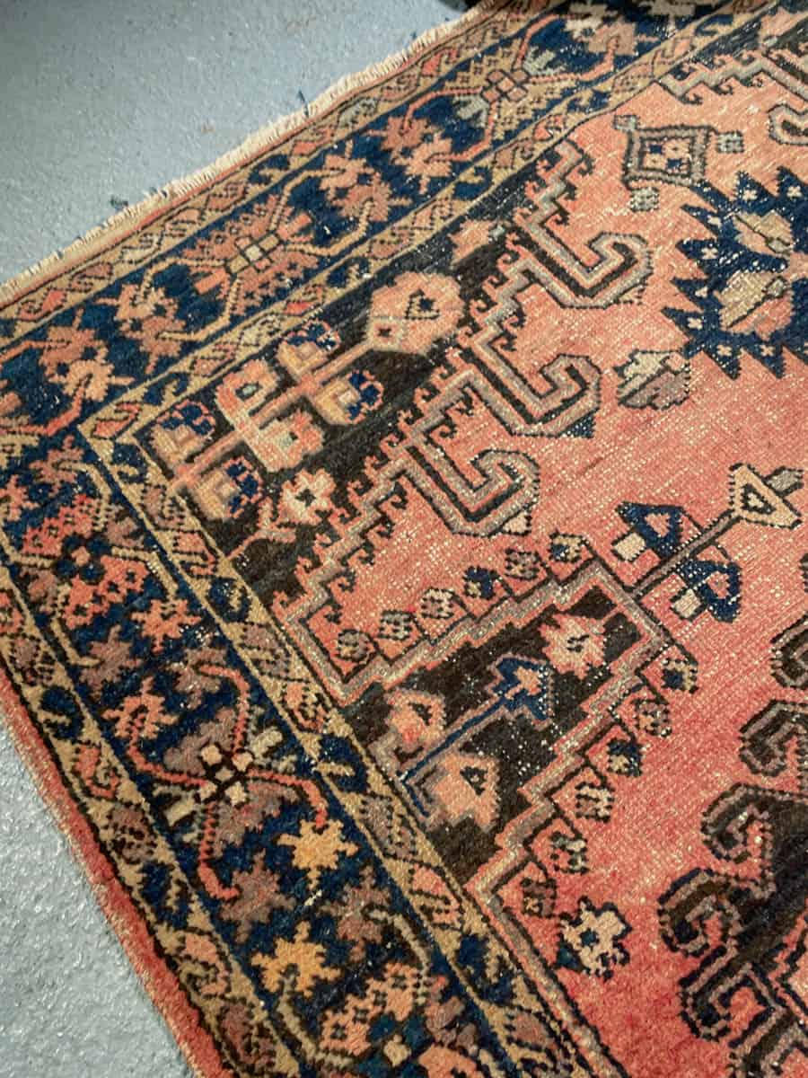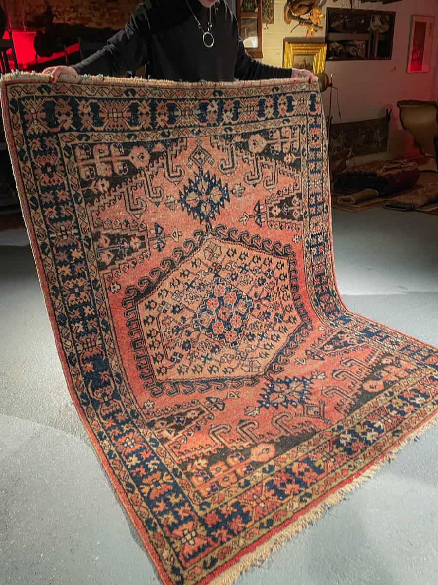 Tämä matto sijaitsee Töölön varastollamme – jos haluat tulla katsomaan sitä paikan päälle, sovithan näytön viestitse tai puhelimitse.