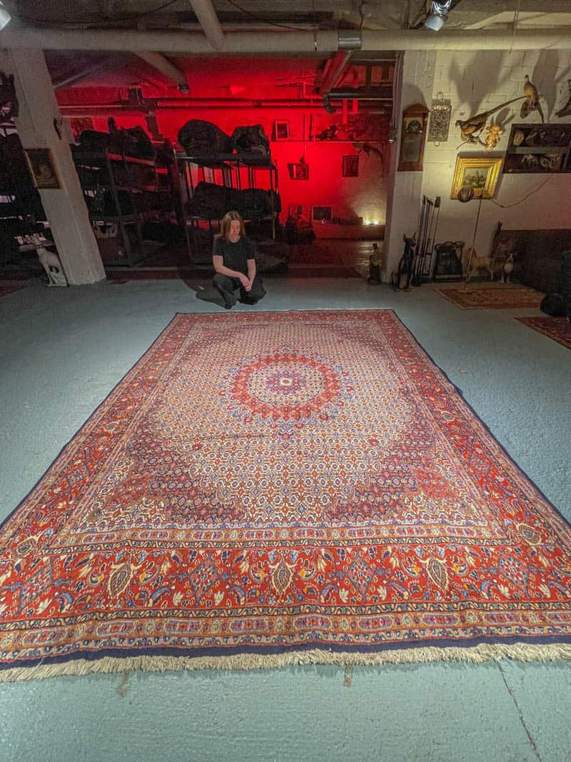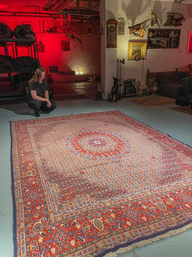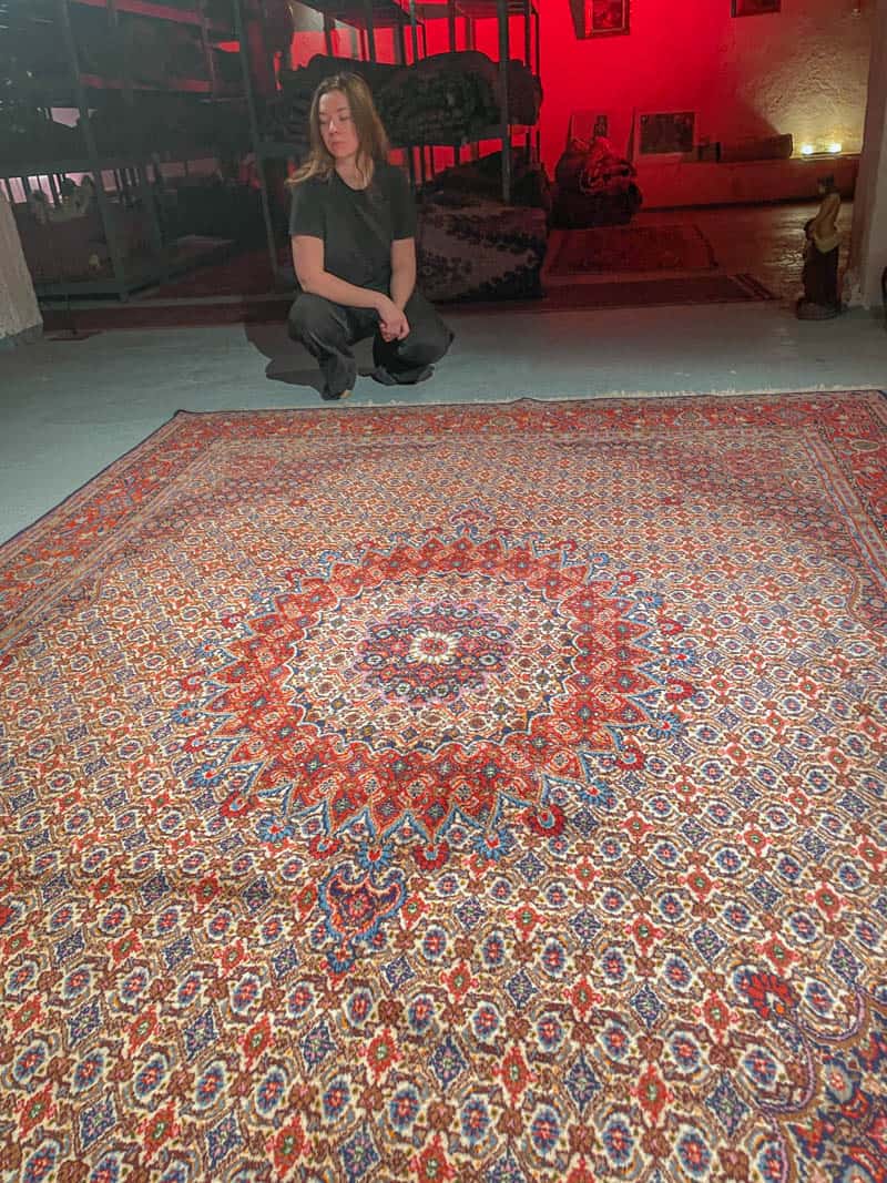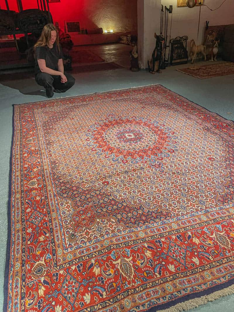 Tämä matto sijaitsee Galleriallamme osoitteessa Kankurinkatu 7, Punavuori – jos haluat tulla katsomaan sitä paikan päälle, sovithan näytön viestitse tai puhelimitse.