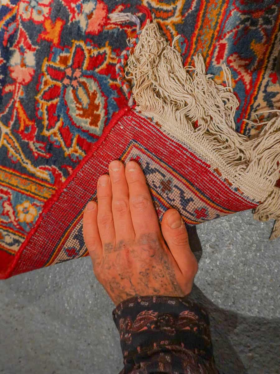 Tämä matto sijaitsee Galleriallamme osoitteessa Kankurinkatu 7, Punavuori – jos haluat tulla katsomaan sitä paikan päälle, sovithan näytön viestitse tai puhelimitse.