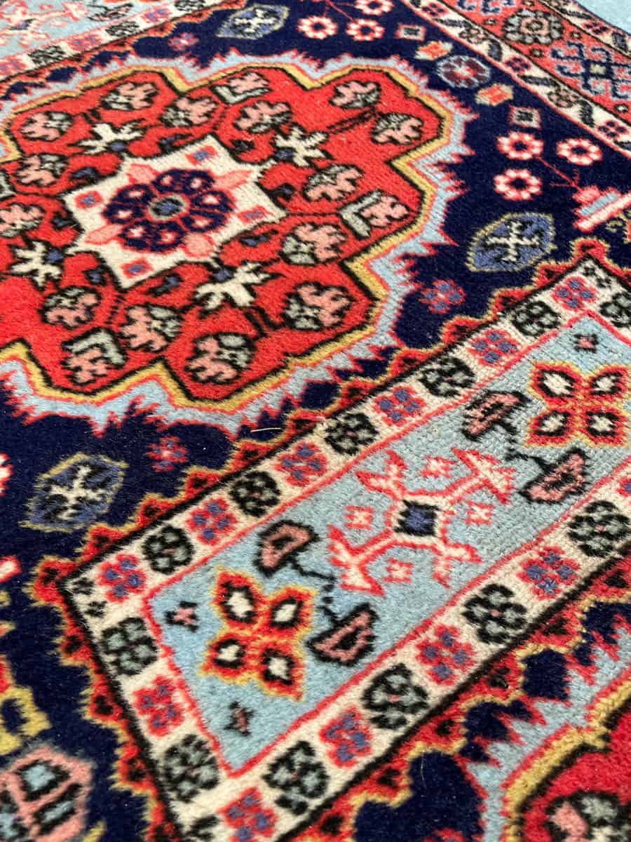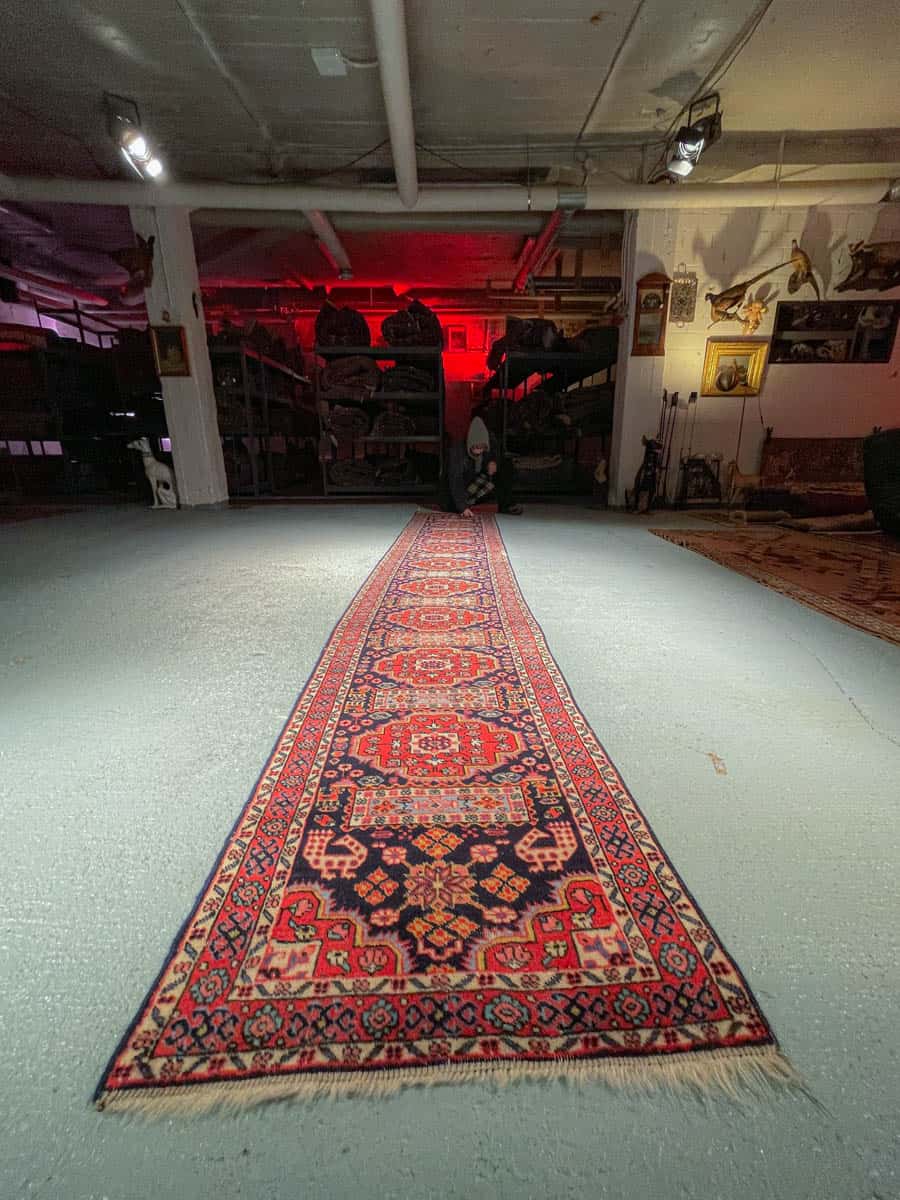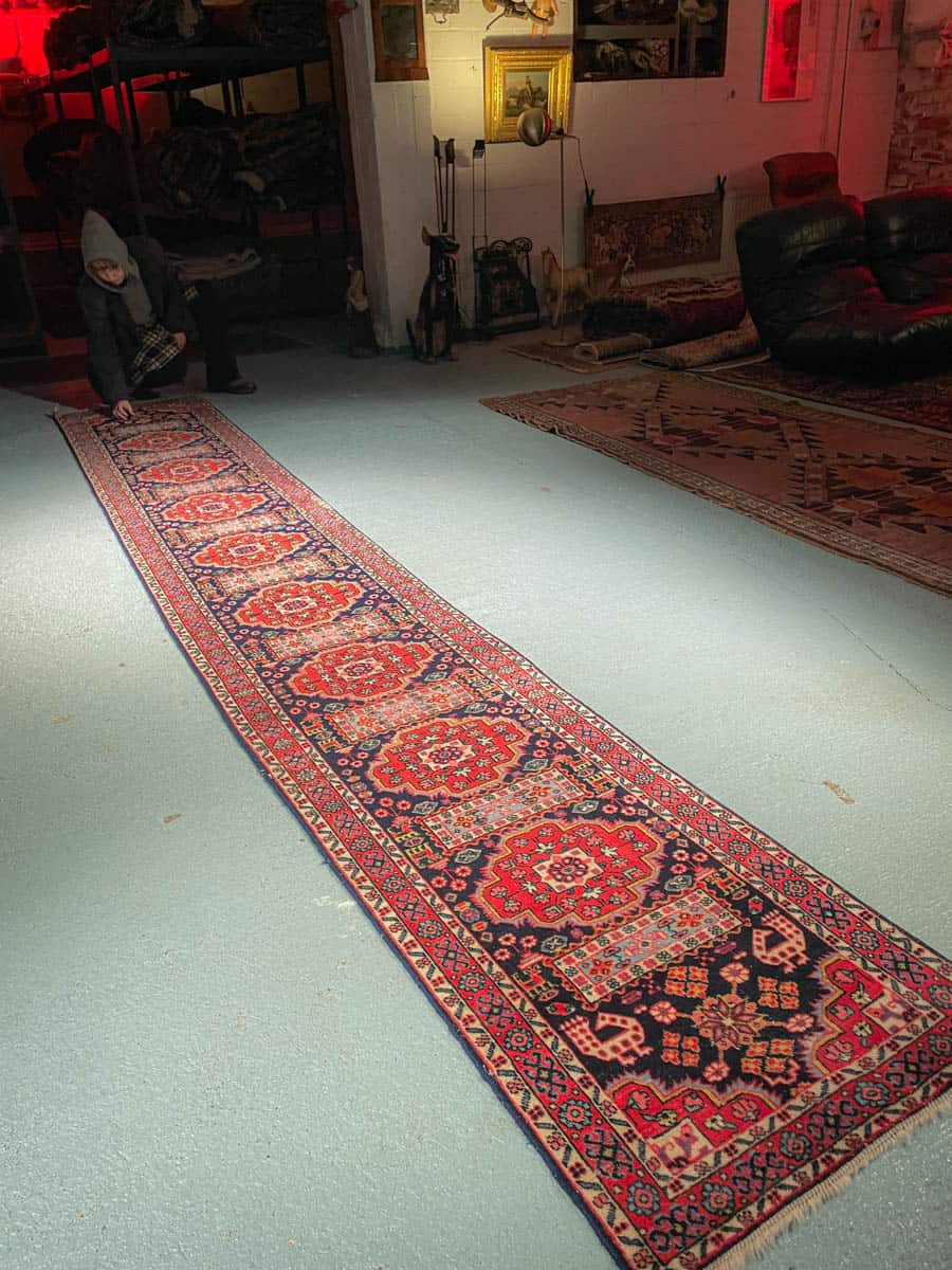 Tämä matto sijaitsee Galleriallamme osoitteessa Kankurinkatu 7, Punavuori – jos haluat tulla katsomaan sitä paikan päälle, sovithan näytön viestitse tai puhelimitse.