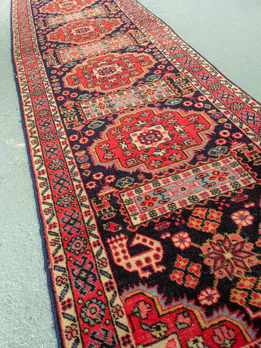 Tyrmäävän pitkä Ardebil-käytävämatto – 473 x 70 cm