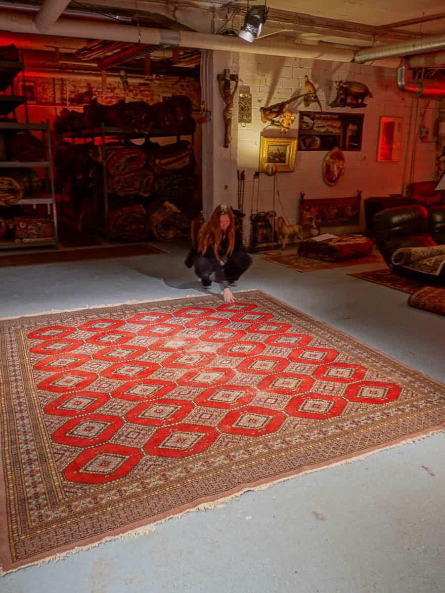 Tämä matto sijaitsee Galleriallamme osoitteessa Kankurinkatu 7, Punavuori – jos haluat tulla katsomaan sitä paikan päälle, sovithan näytön viestitse tai puhelimitse.