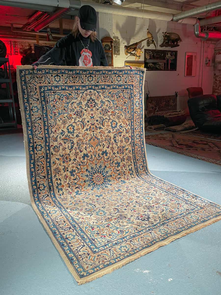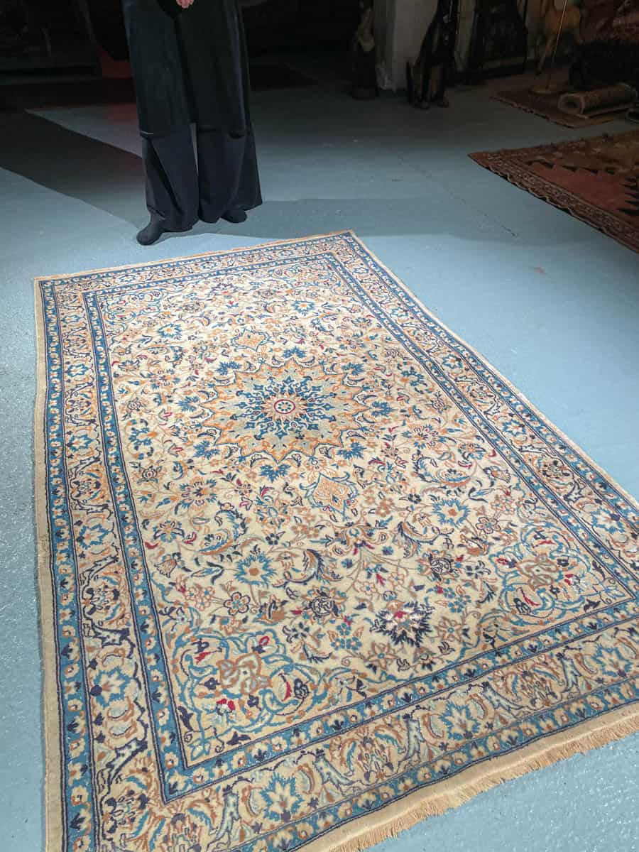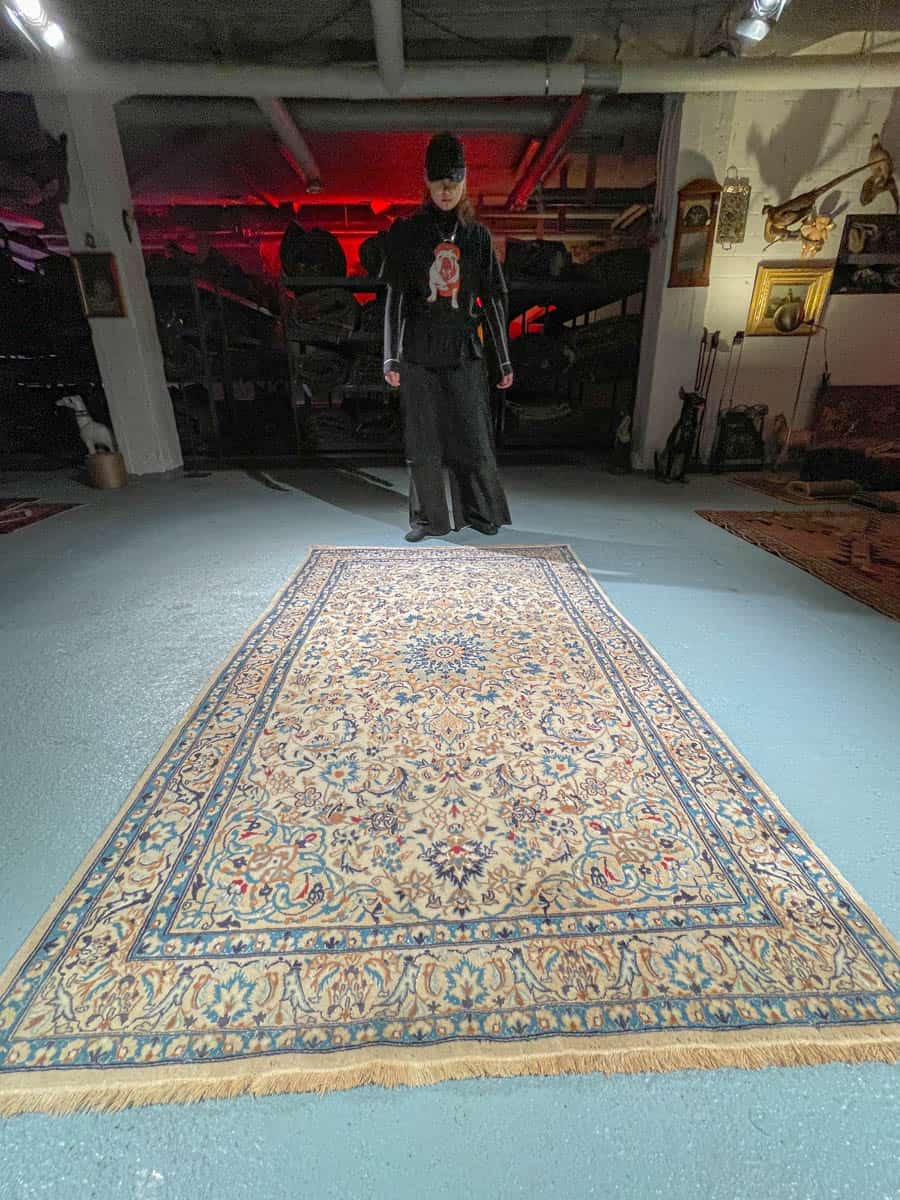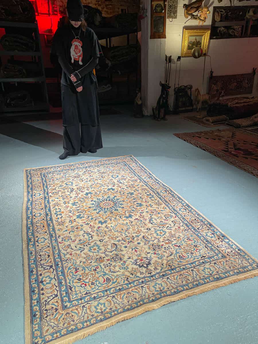 Tämä matto sijaitsee Galleriallamme osoitteessa Kankurinkatu 7, Punavuori – jos haluat tulla katsomaan sitä paikan päälle, sovithan näytön viestitse tai puhelimitse.