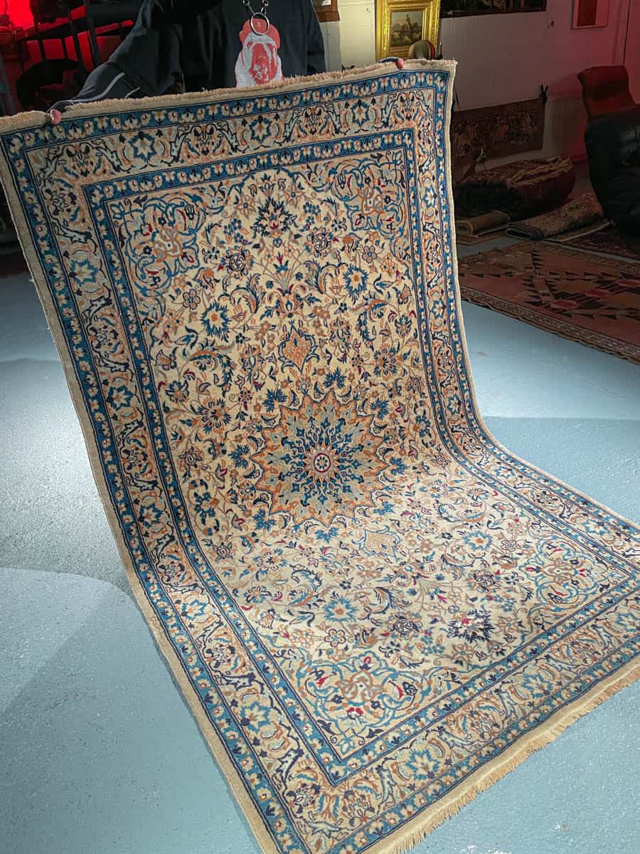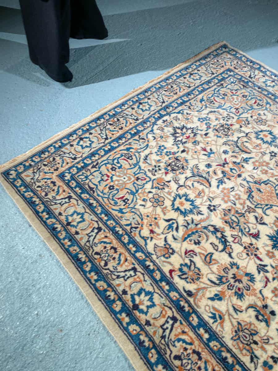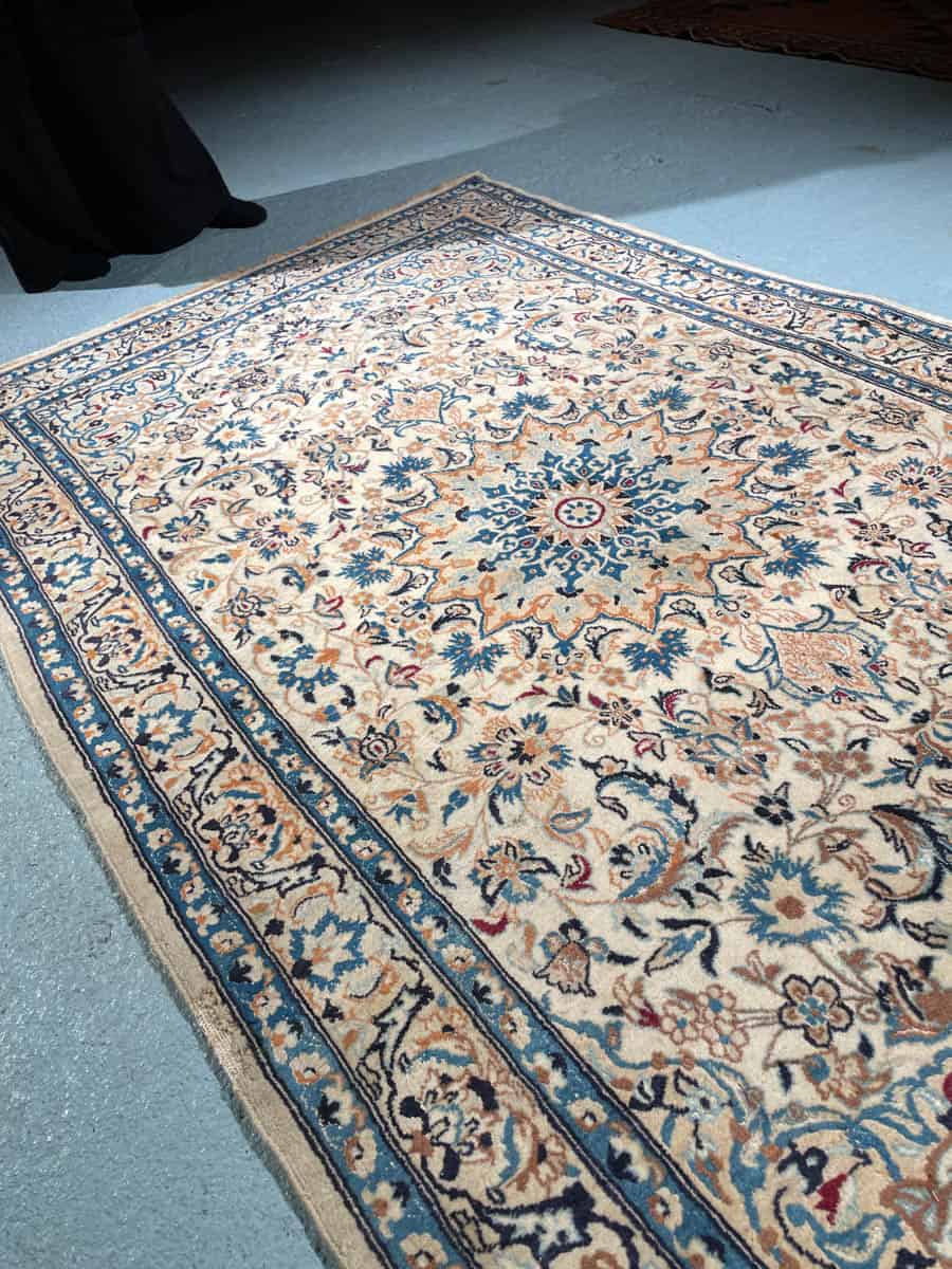 Harmoninen persialainen Nain perinteisellä sinivalkoisella väriteemalla ja silkkidetaljeilla.