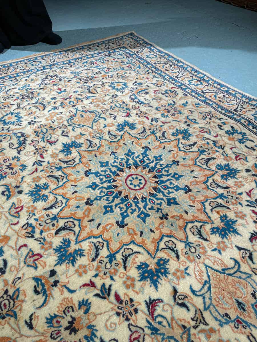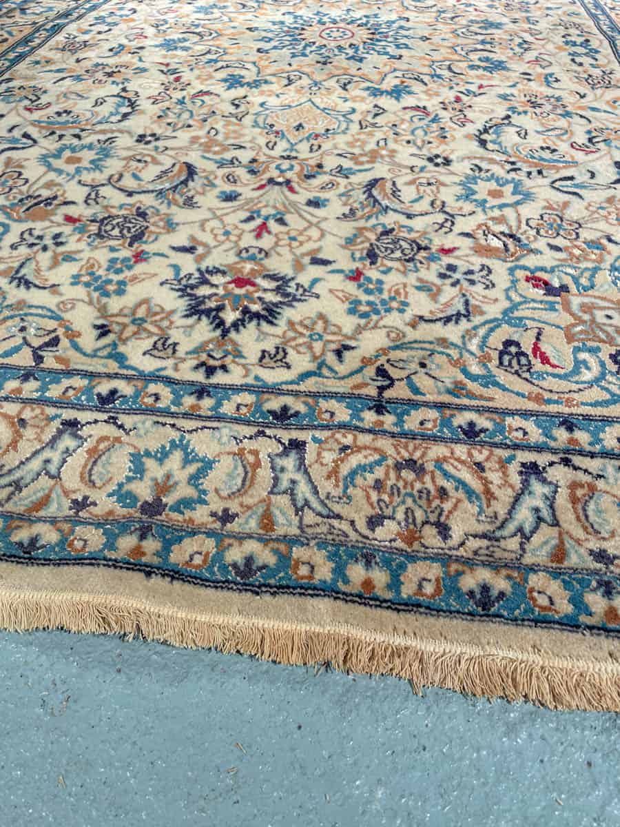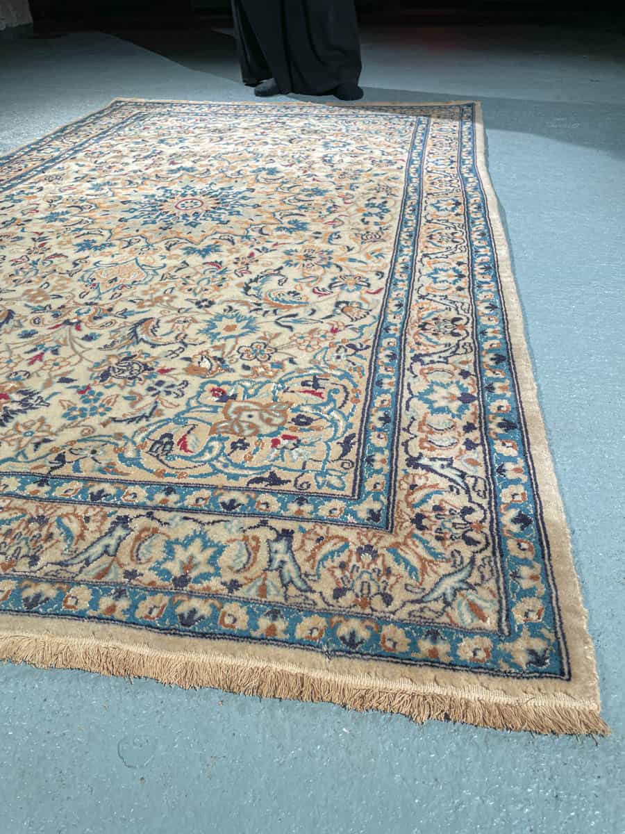 Harmoninen persialainen Nain perinteisellä sinivalkoisella väriteemalla ja silkkidetaljeilla.