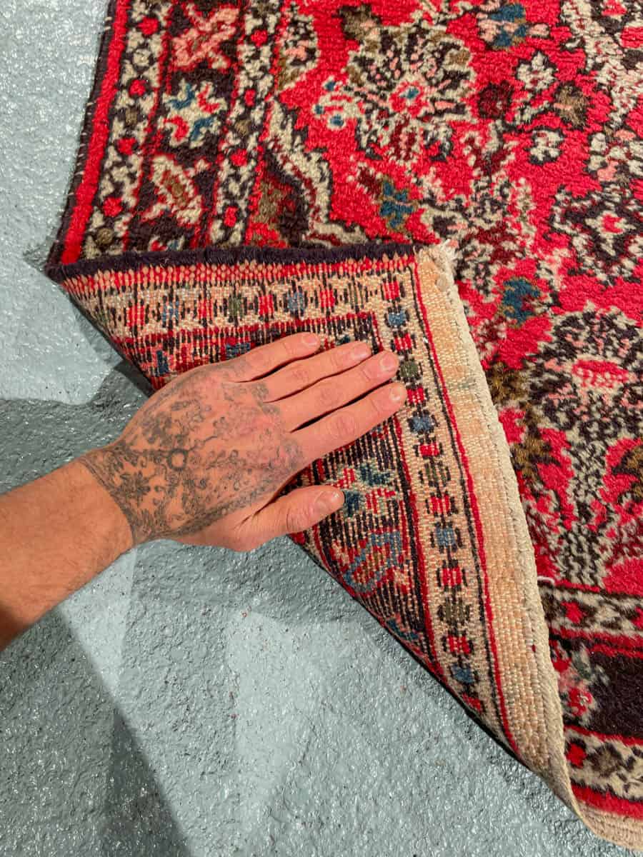 Upea Sarouk kukkaiskuvioinnilla ja punaisella väriteemalla. Käsinsolmittu villasta.