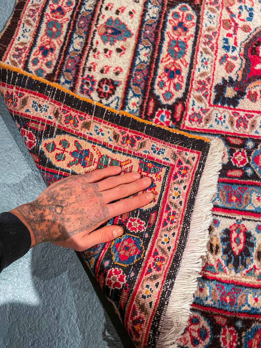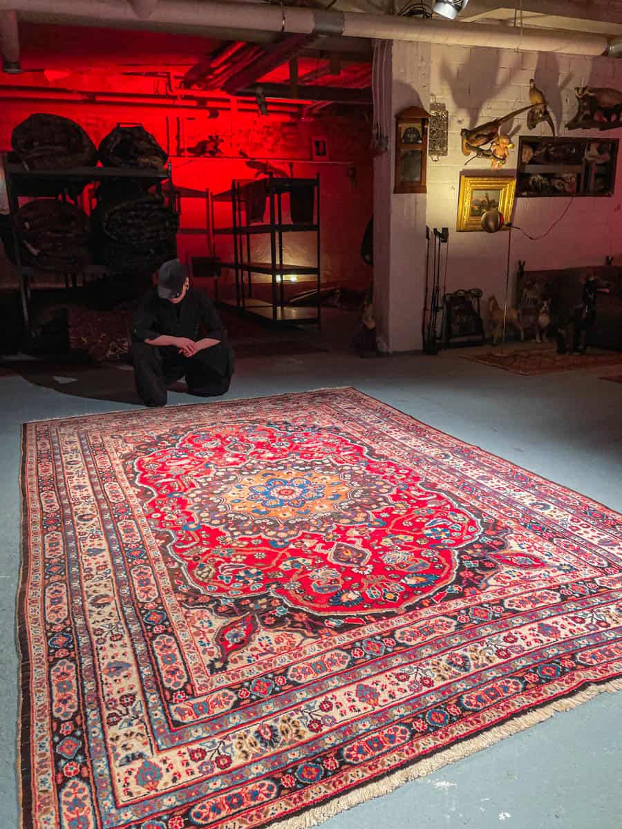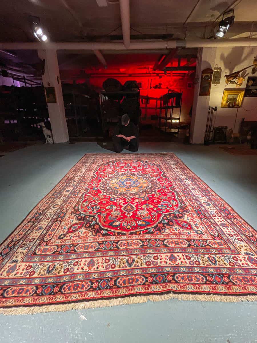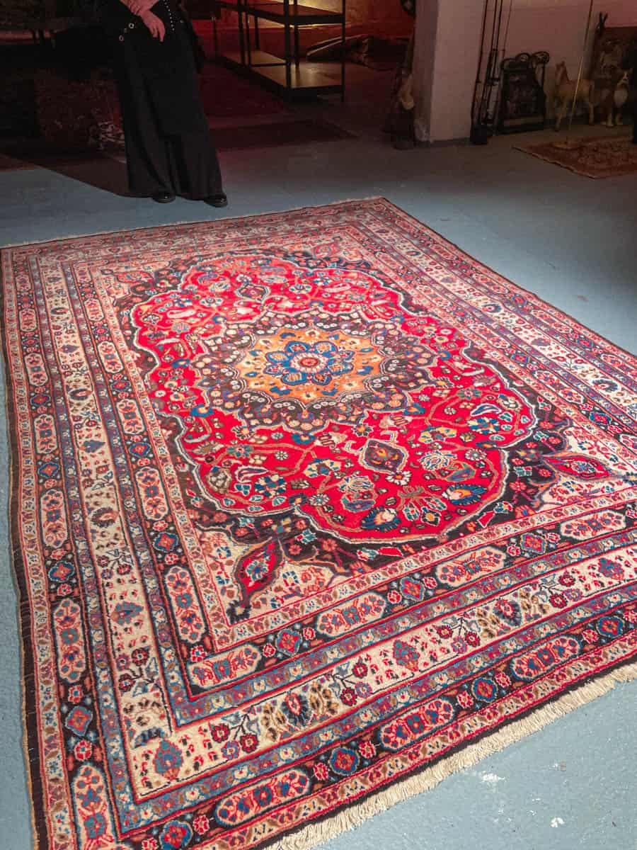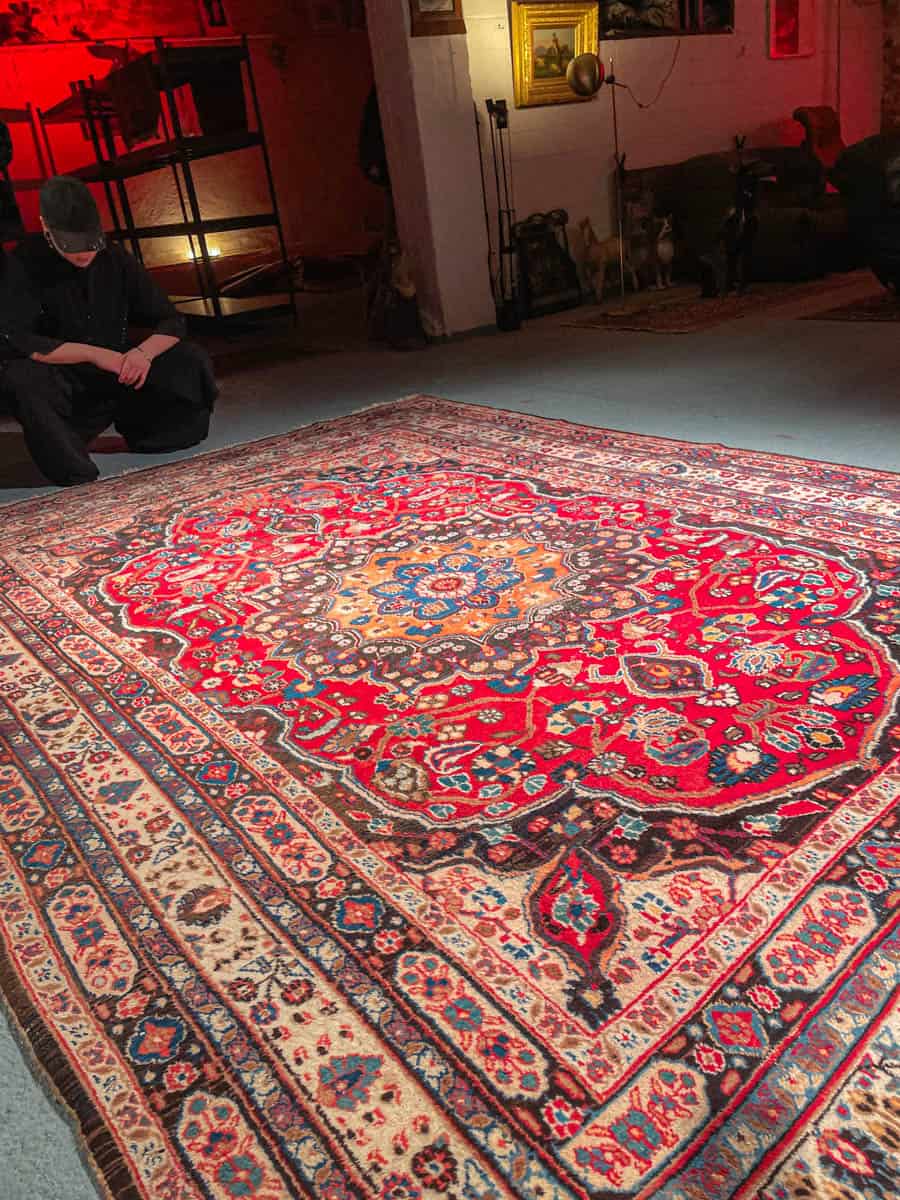 Tämä matto sijaitsee Galleriallamme osoitteessa Kankurinkatu 7, Punavuori – jos haluat tulla katsomaan sitä paikan päälle, sovithan näytön viestitse tai puhelimitse.