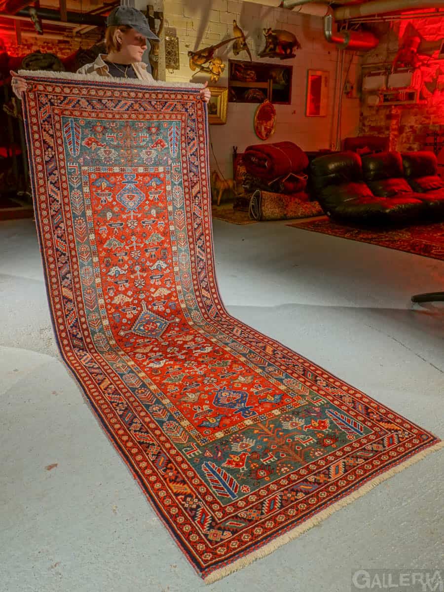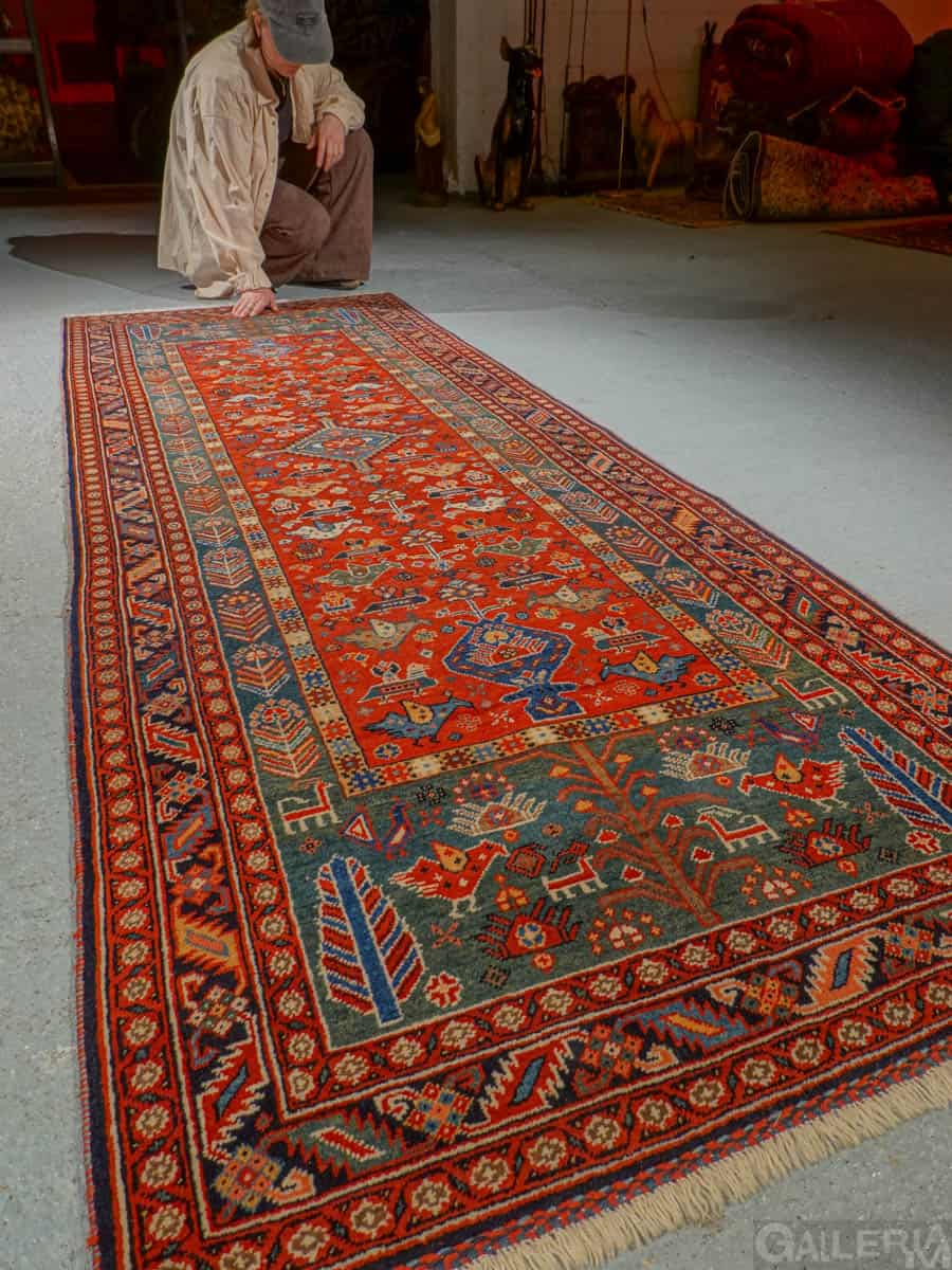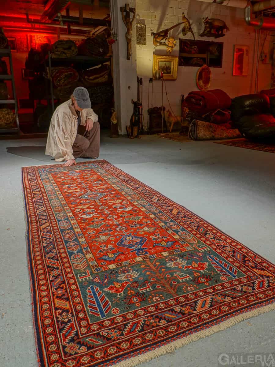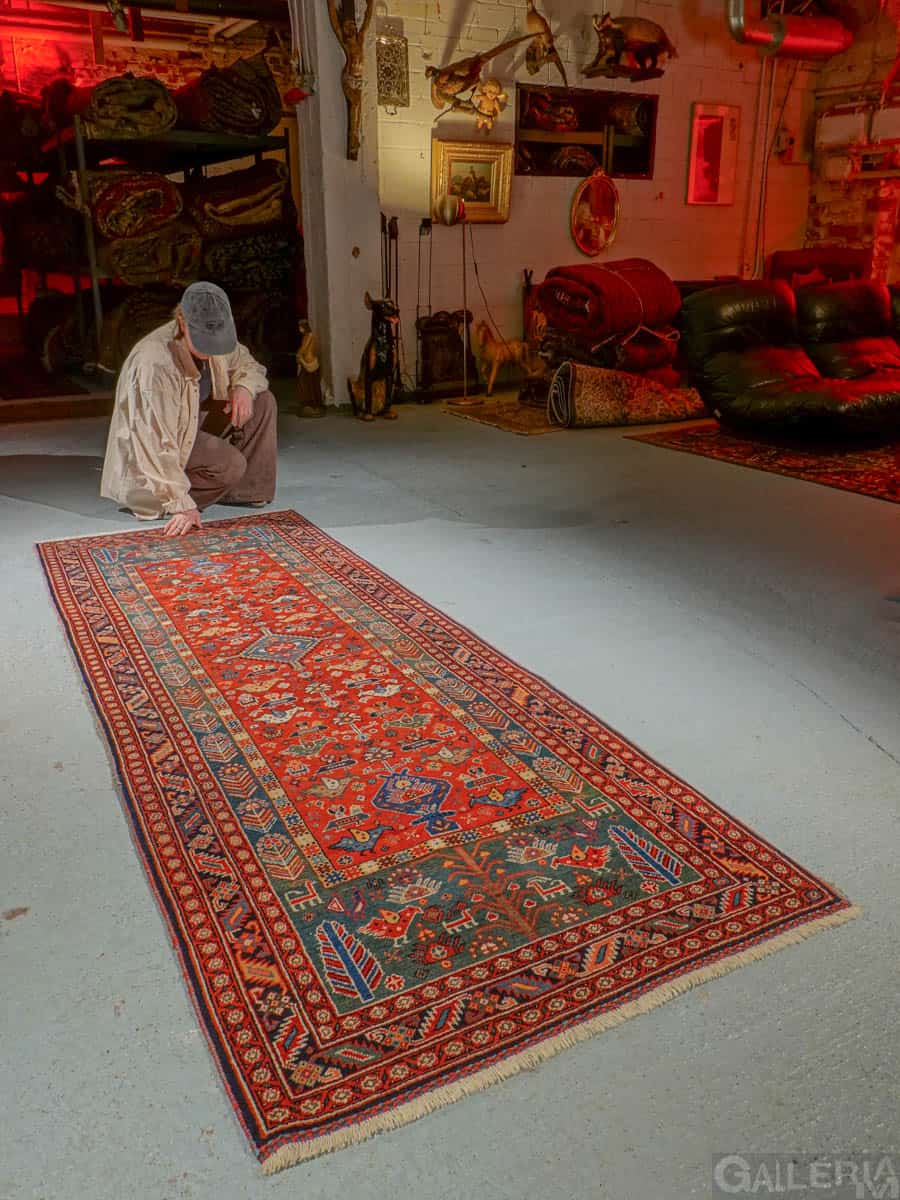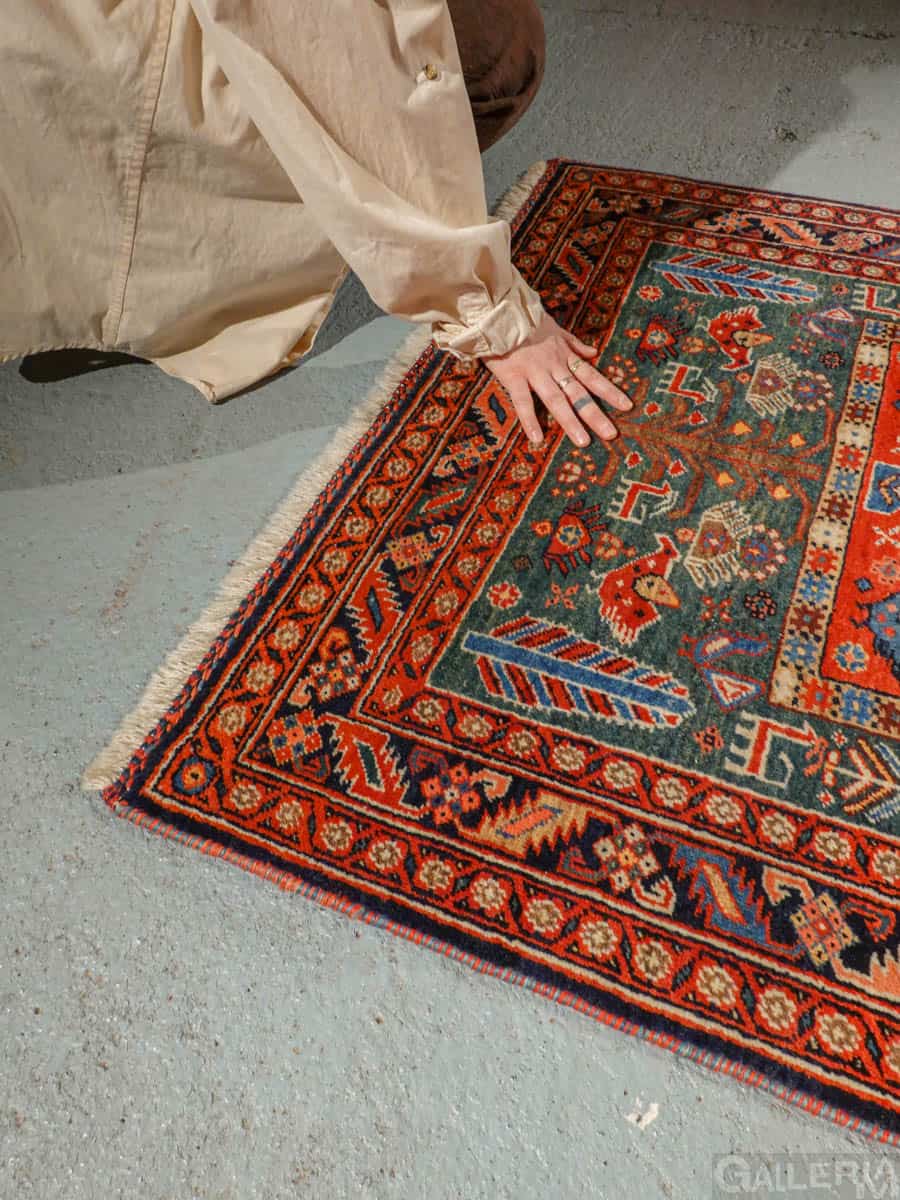 Tämä matto sijaitsee Galleriallamme osoitteessa Kankurinkatu 7, Punavuori – jos haluat tulla katsomaan sitä paikan päälle, sovithan näytön viestitse tai puhelimitse.