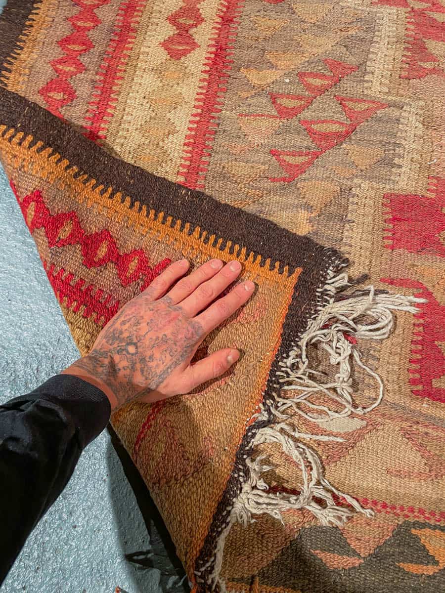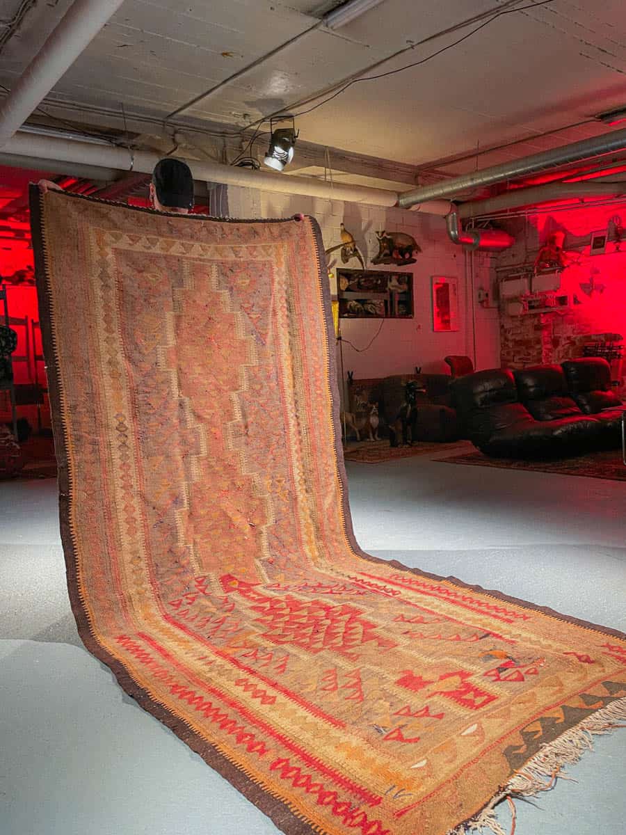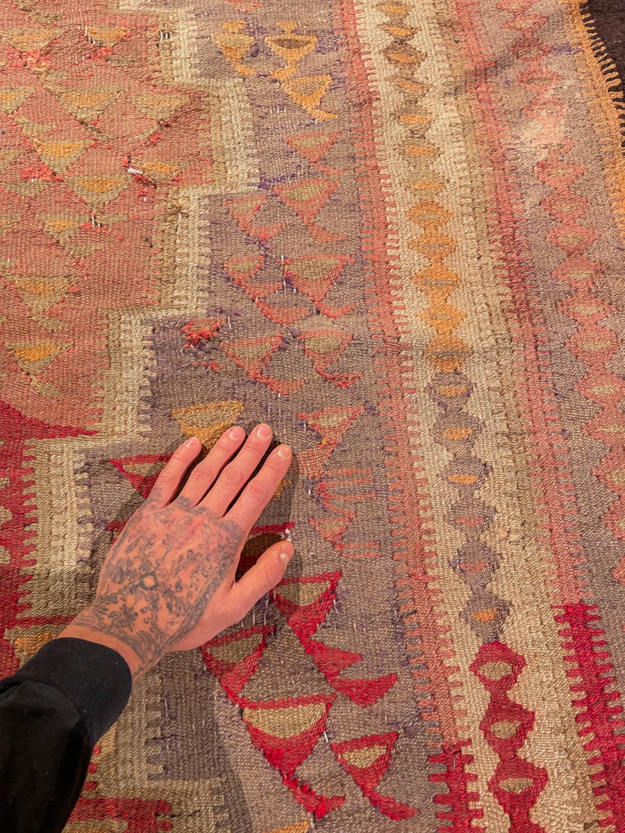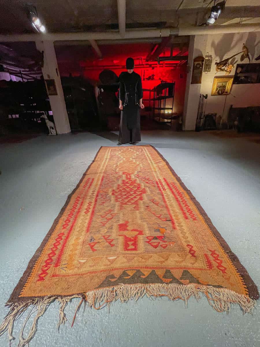 Tämä matto sijaitsee Galleriallamme osoitteessa Kankurinkatu 7, Punavuori – jos haluat tulla katsomaan sitä paikan päälle, sovithan näytön viestitse tai puhelimitse.