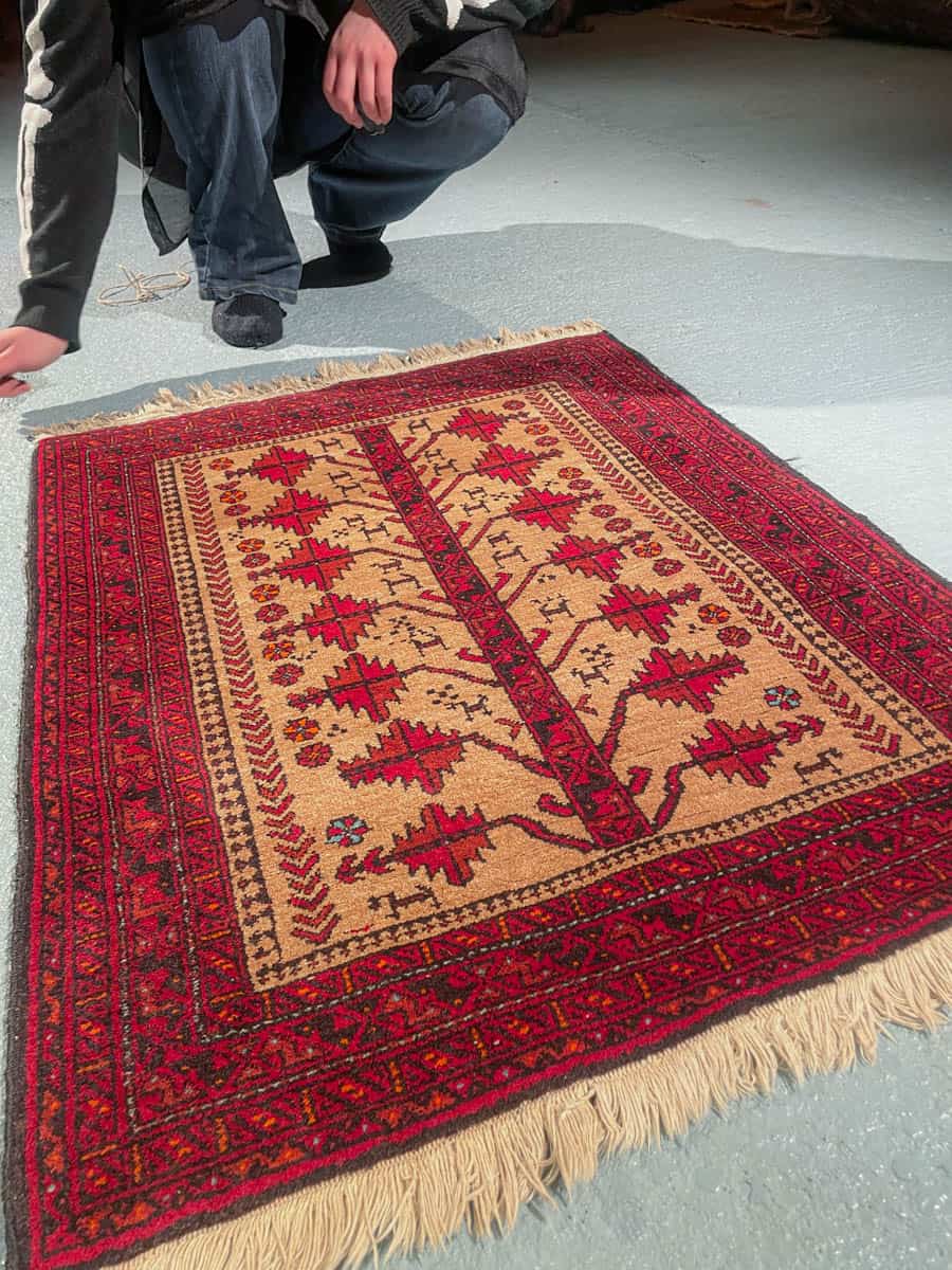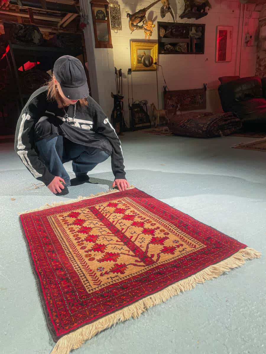 Tämä matto sijaitsee Galleriallamme osoitteessa Kankurinkatu 7, Punavuori – jos haluat tulla katsomaan sitä paikan päälle, sovithan näytön viestitse tai puhelimitse.