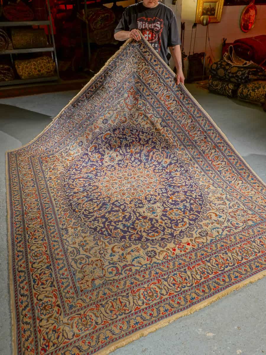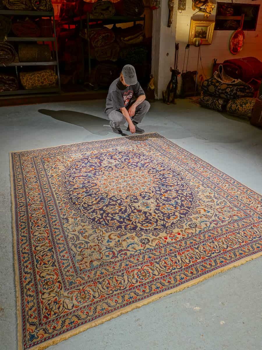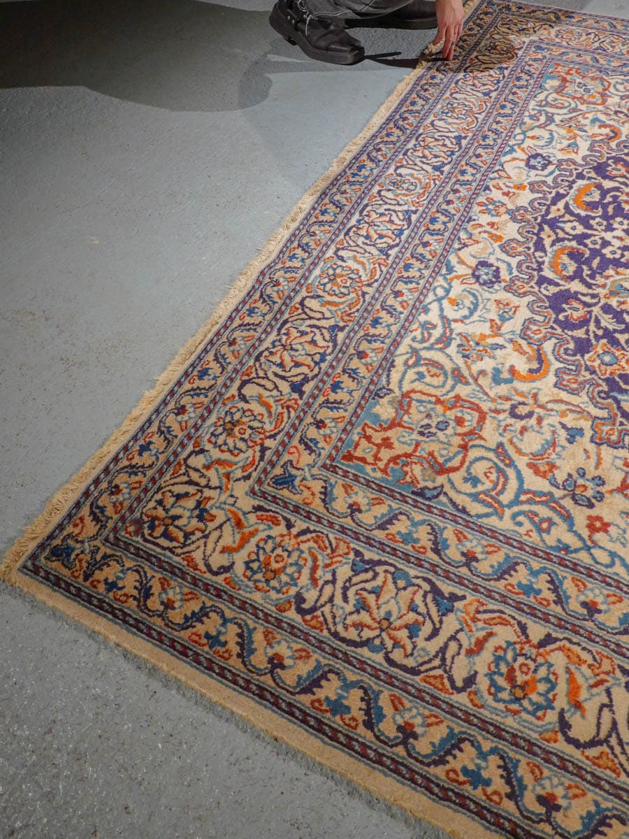 Tämä matto sijaitsee Galleriallamme osoitteessa Kankurinkatu 7, Punavuori – jos haluat tulla katsomaan sitä paikan päälle, sovithan näytön viestitse tai puhelimitse.