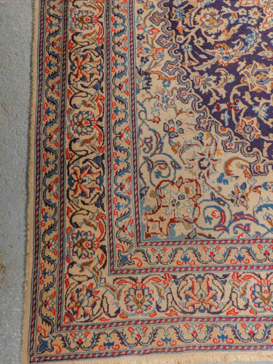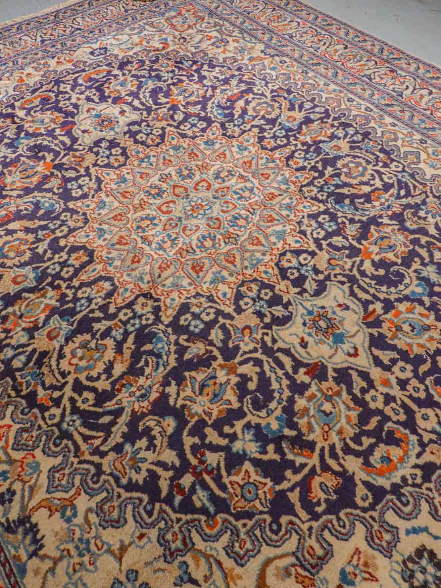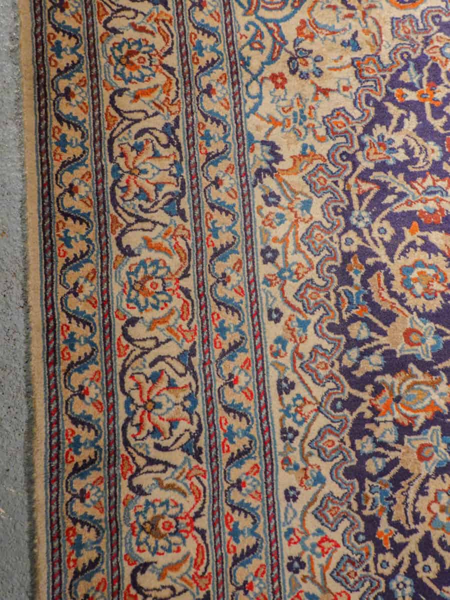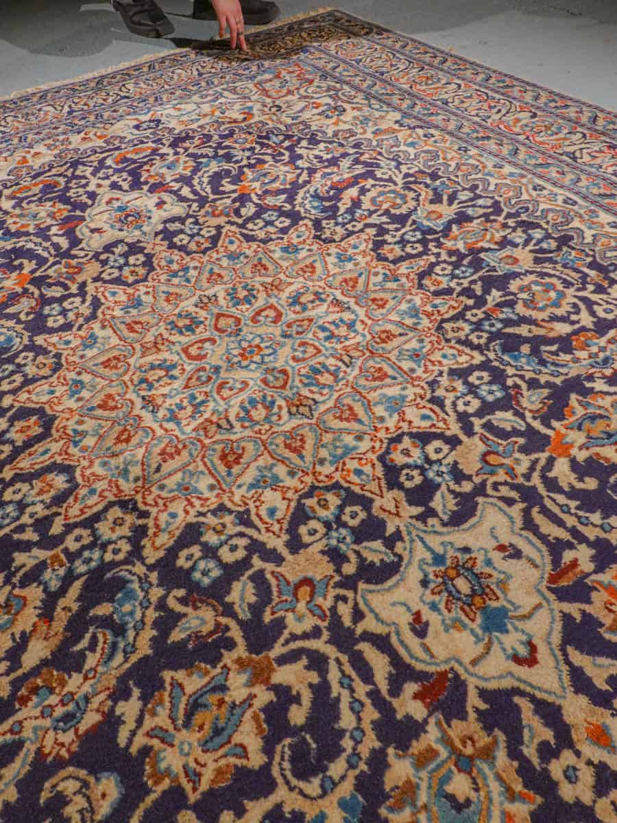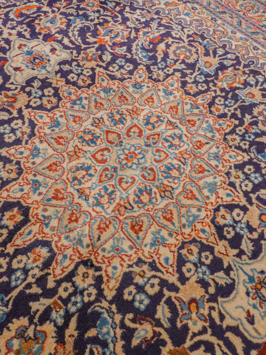 Upea Nain perinteisellä kuvioinnilla ja tyylikkään elegantilla yönsinisellä keskustalla. Matto on koristeltu yksityiskohtaisilla kuvoinneilla, jotka huipentuvat näyttävään keskimedaljonkiin.