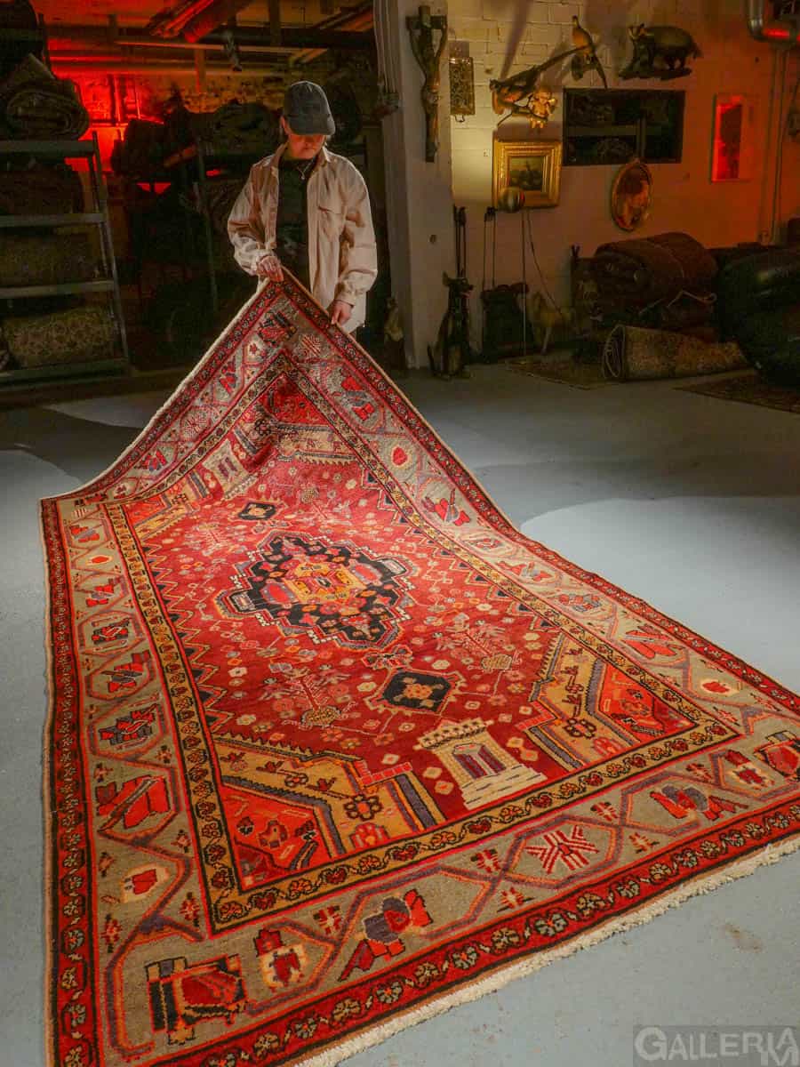 Tämä matto sijaitsee Galleriallamme osoitteessa Kankurinkatu 7, Punavuori – jos haluat tulla katsomaan sitä paikan päälle, sovithan näytön viestitse tai puhelimitse.
