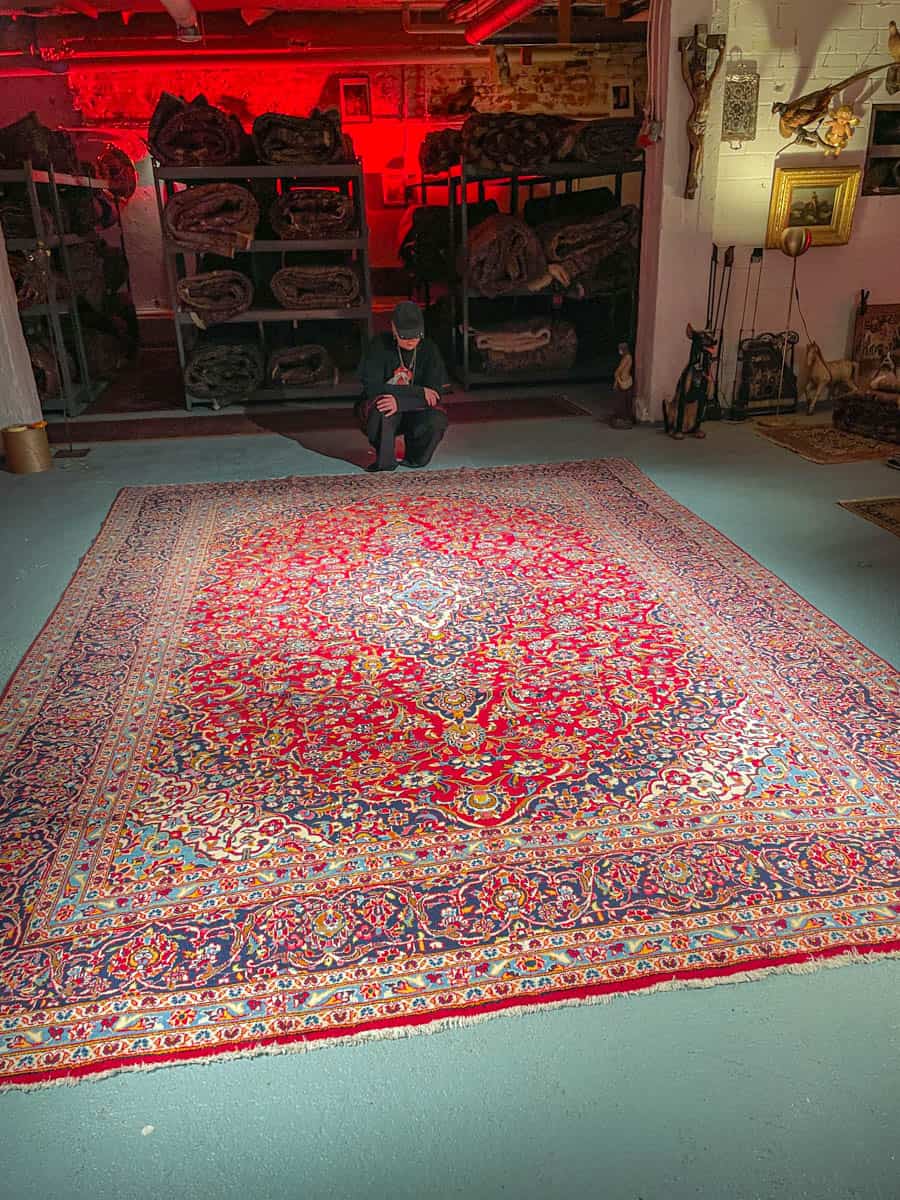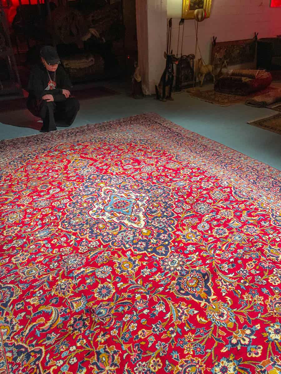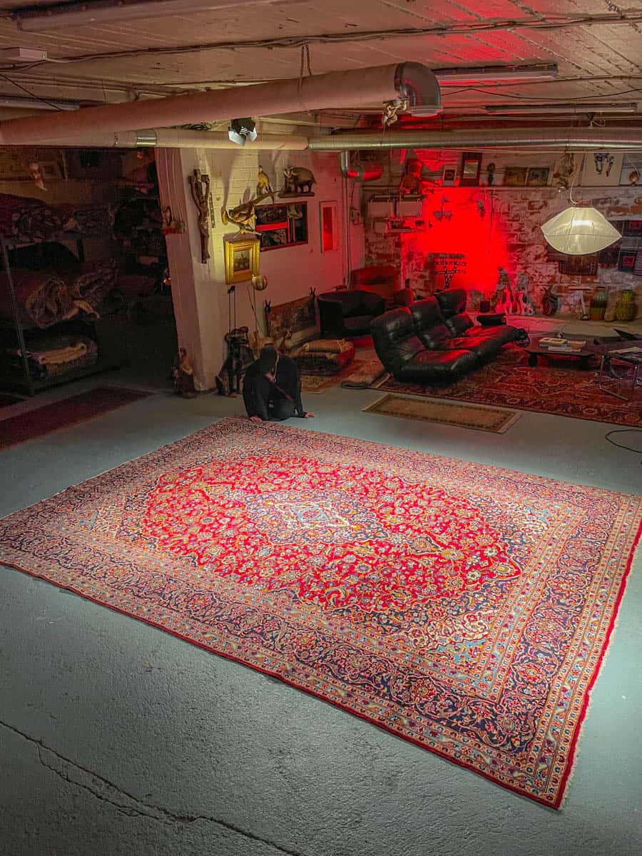 Tämä matto sijaitsee Galleriallamme osoitteessa Kankurinkatu 7, Punavuori – jos haluat tulla katsomaan sitä paikan päälle, sovithan näytön viestitse tai puhelimitse.