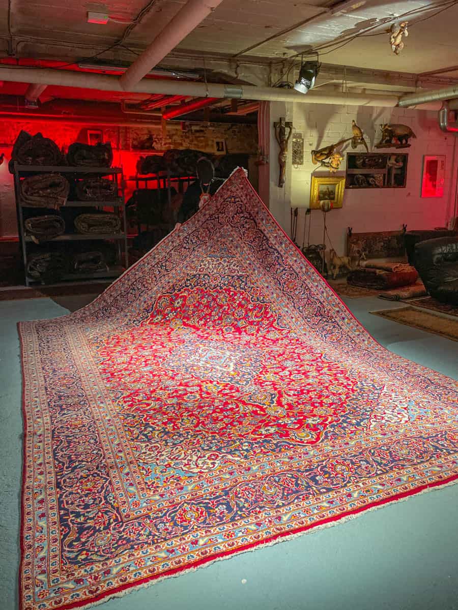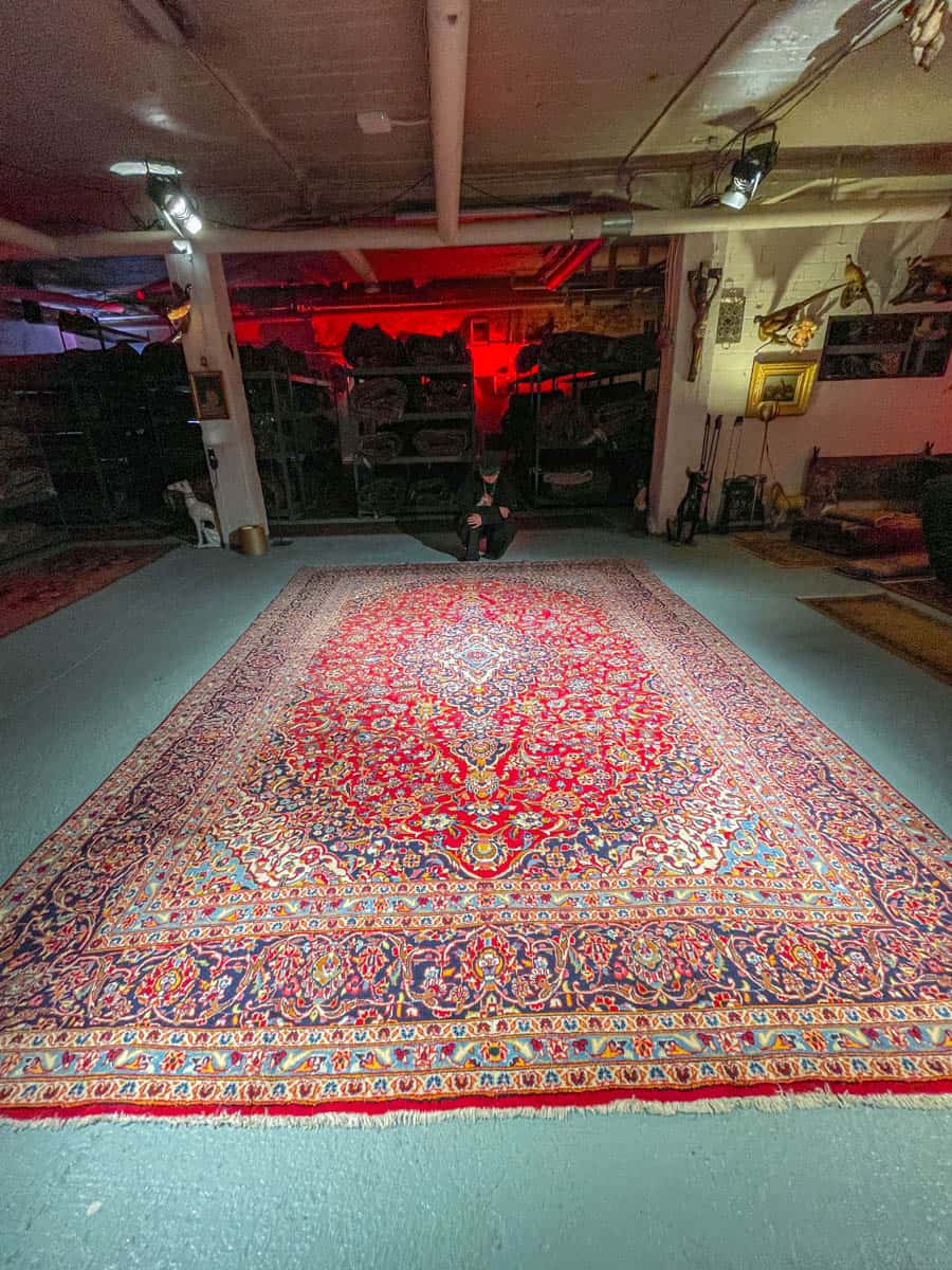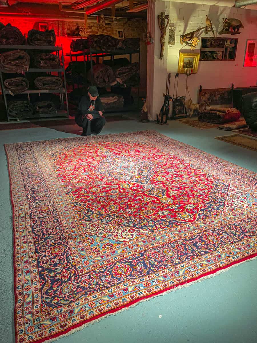 Tämä matto sijaitsee Galleriallamme osoitteessa Kankurinkatu 7, Punavuori – jos haluat tulla katsomaan sitä paikan päälle, sovithan näytön viestitse tai puhelimitse.