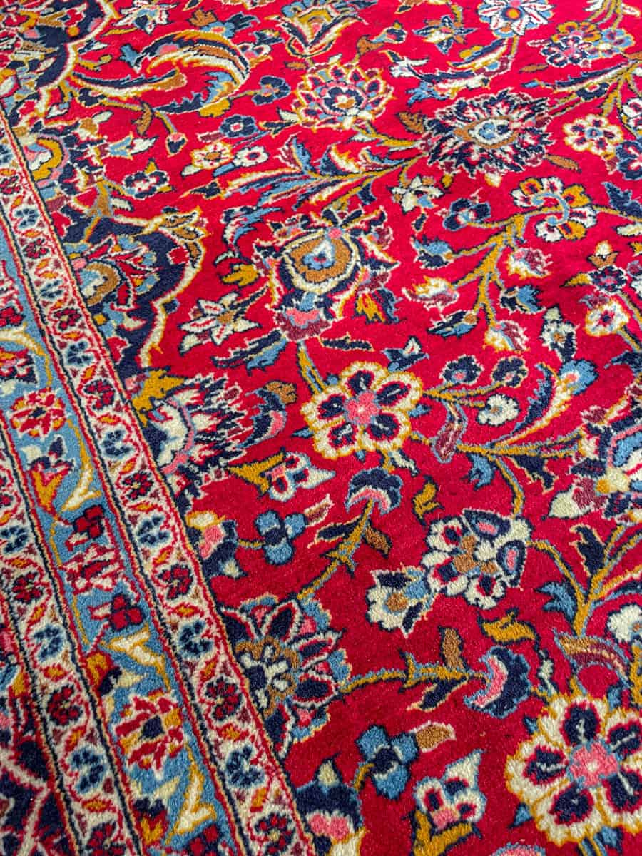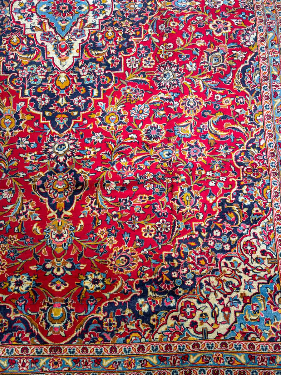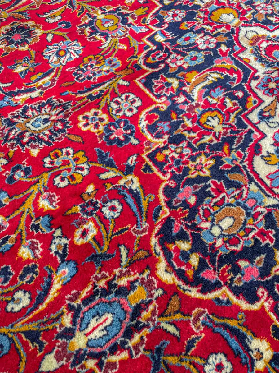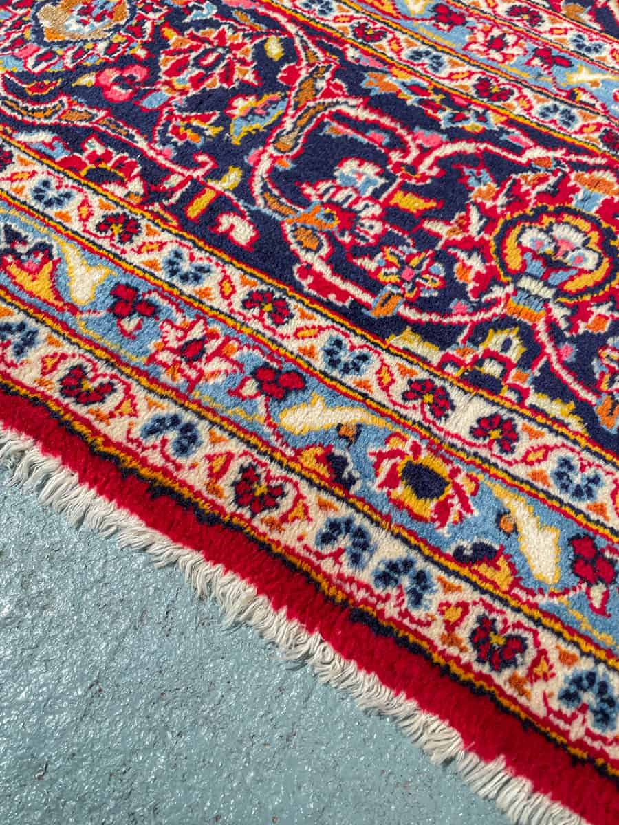 Käsinsolmittu perinteiseen persialaiseen Keshan-tyyliin. Kaunis ja perinteinen kuviointi keskimedaljongilla. Upeana säilynyt väritys. Käsinsolmittu villasta.
