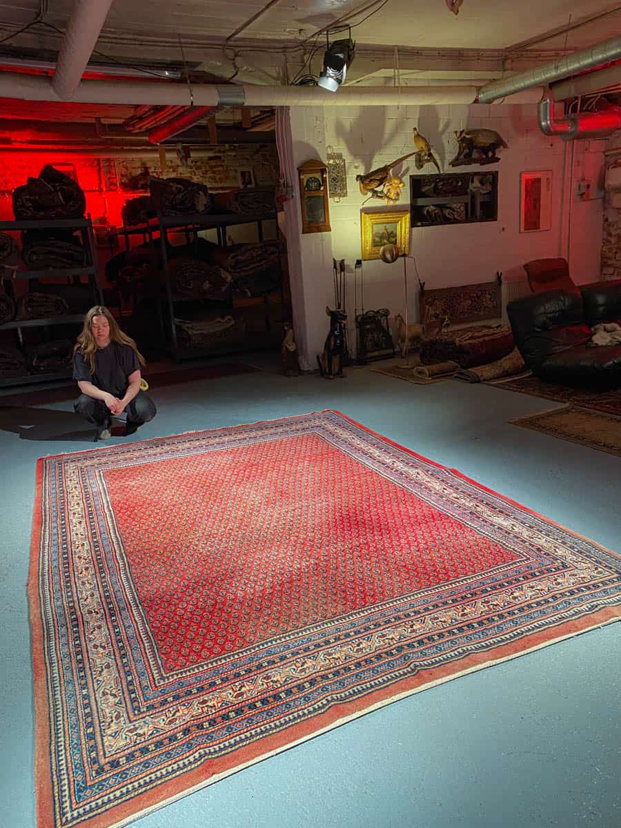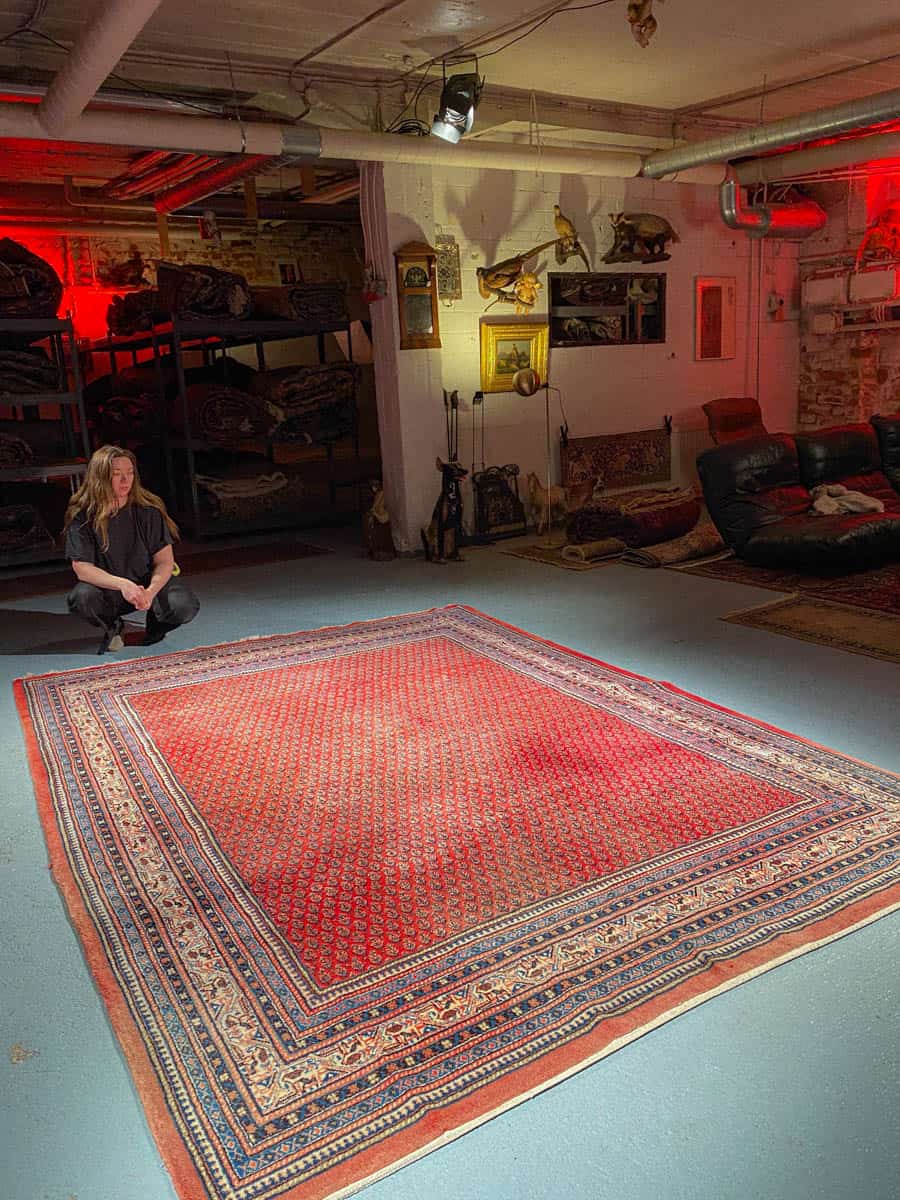 Tämä matto sijaitsee Galleriallamme osoitteessa Kankurinkatu 7, Punavuori – jos haluat tulla katsomaan sitä paikan päälle, sovithan näytön viestitse tai puhelimitse.