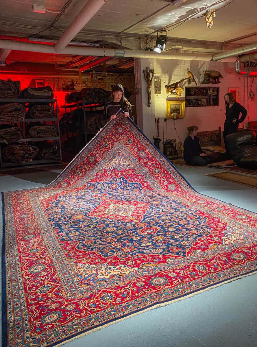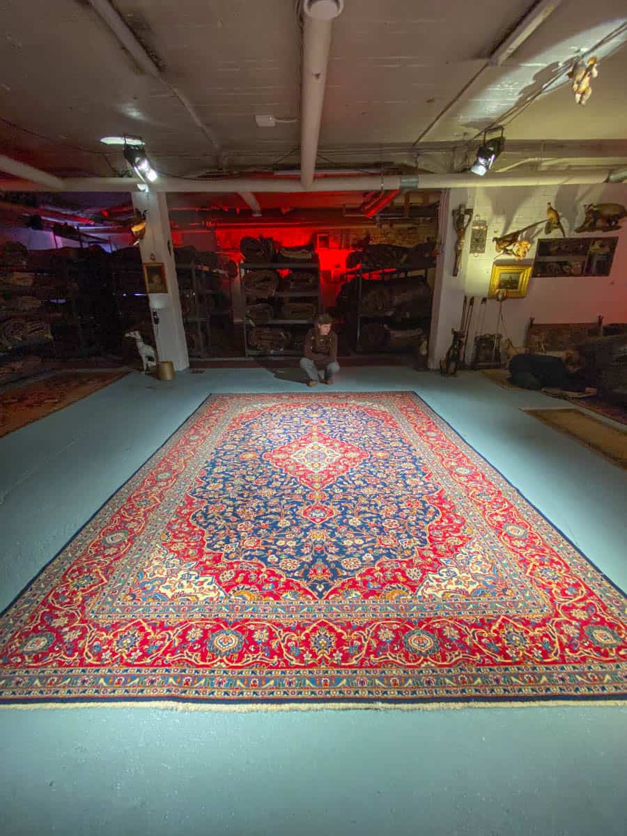 Tämä matto sijaitsee Galleriallamme osoitteessa Kankurinkatu 7, Punavuori – jos haluat tulla katsomaan sitä paikan päälle, sovithan näytön viestitse tai puhelimitse.