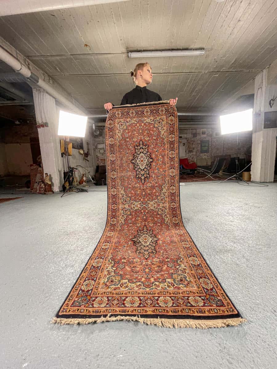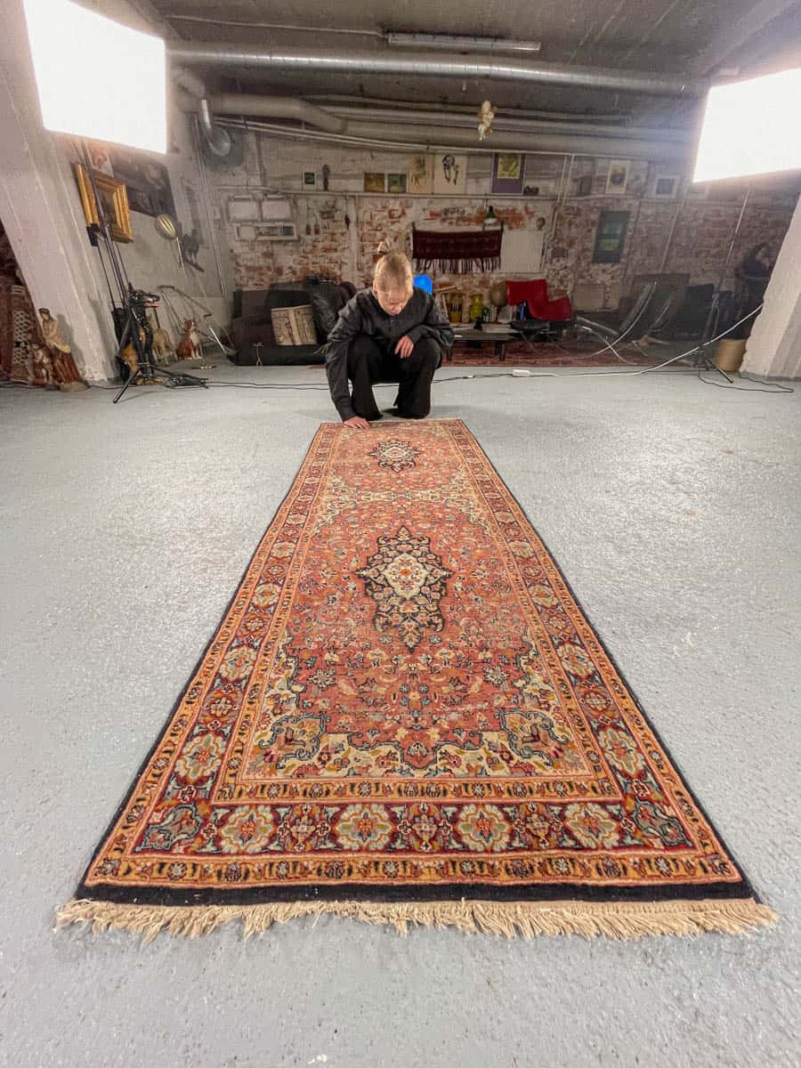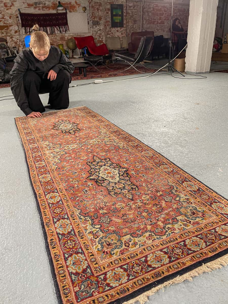 Tämä matto sijaitsee Galleriallamme osoitteessa Kankurinkatu 7, Punavuori – jos haluat tulla katsomaan sitä paikan päälle, sovithan näytön viestitse tai puhelimitse.