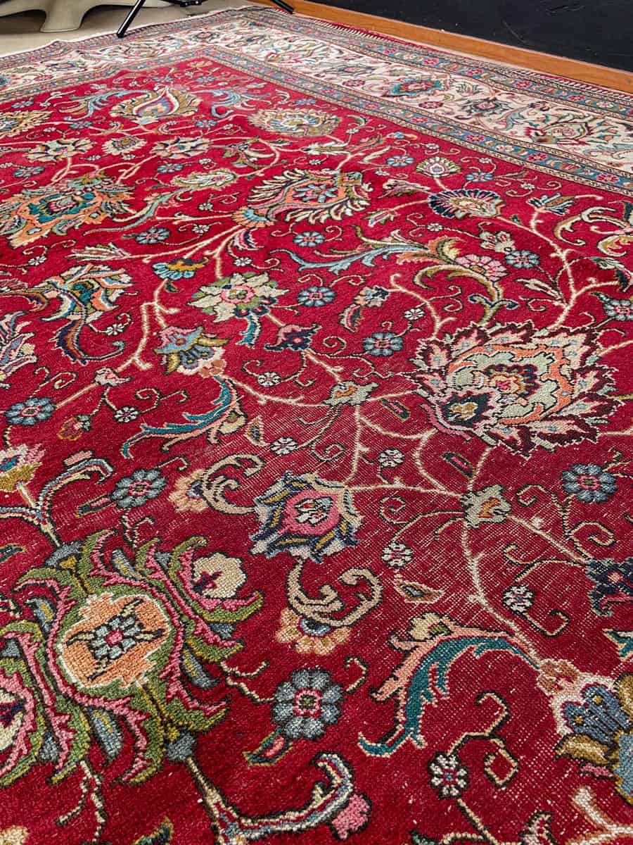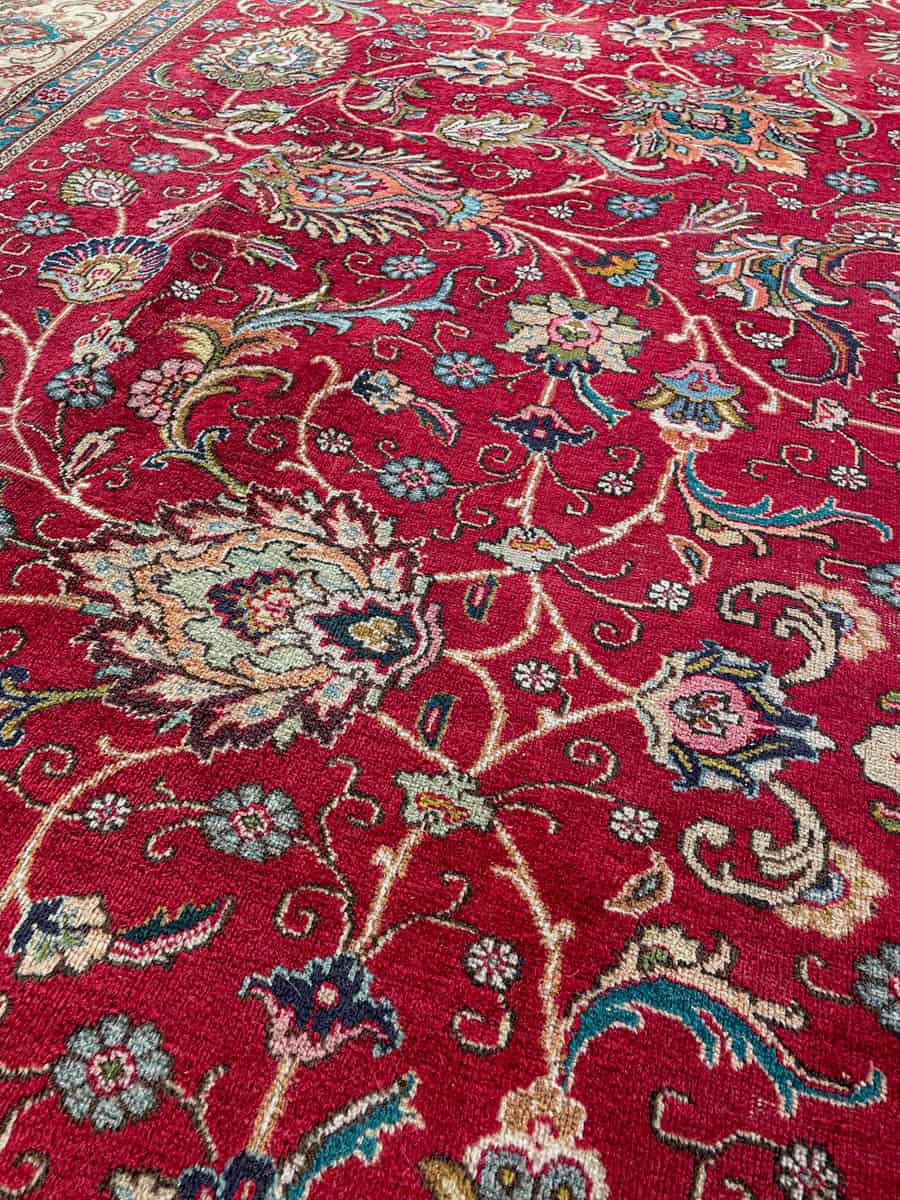Valtava vintage-Tabriz hyvin säilyneillä klassisilla väreillä. Harmonisen perinteinen orgaaninen kukkaisteema. Huoneen keskipiste!