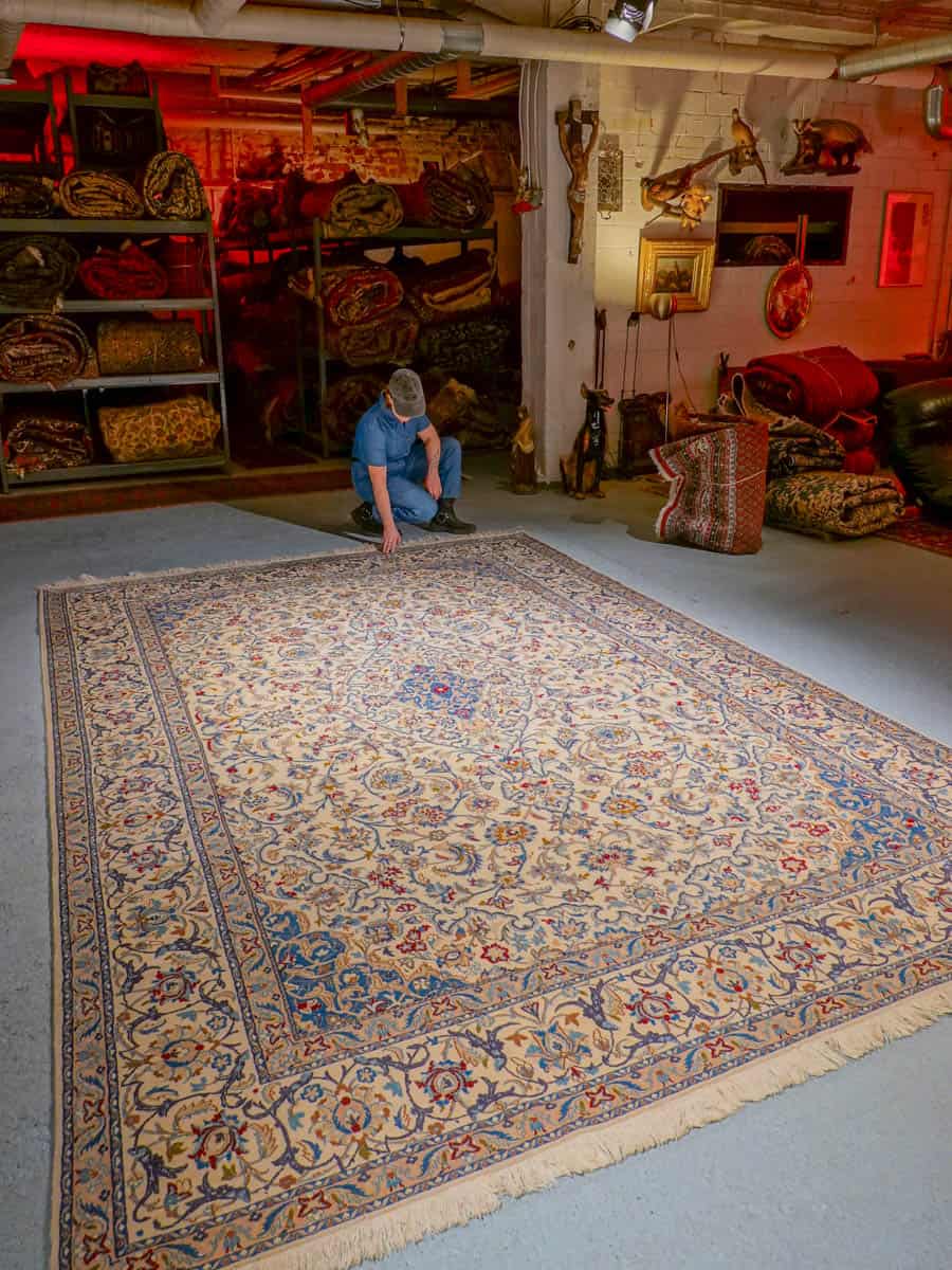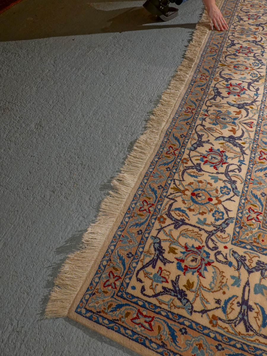 Tämä matto sijaitsee Galleriallamme osoitteessa Kankurinkatu 7, Punavuori – jos haluat tulla katsomaan sitä paikan päälle, sovithan näytön viestitse tai puhelimitse.