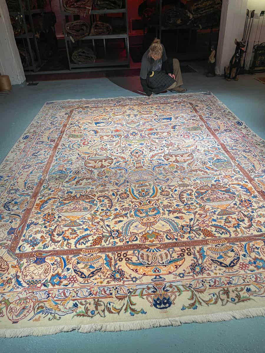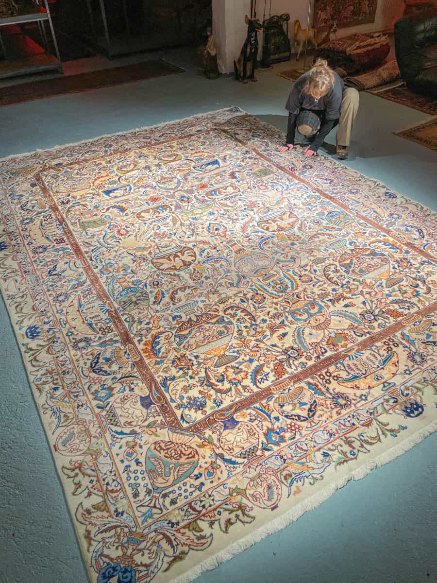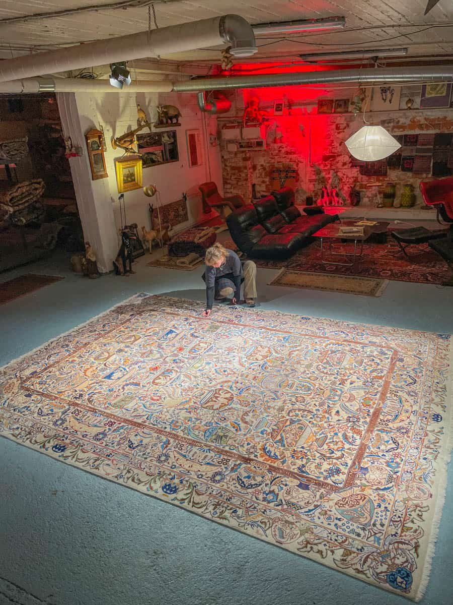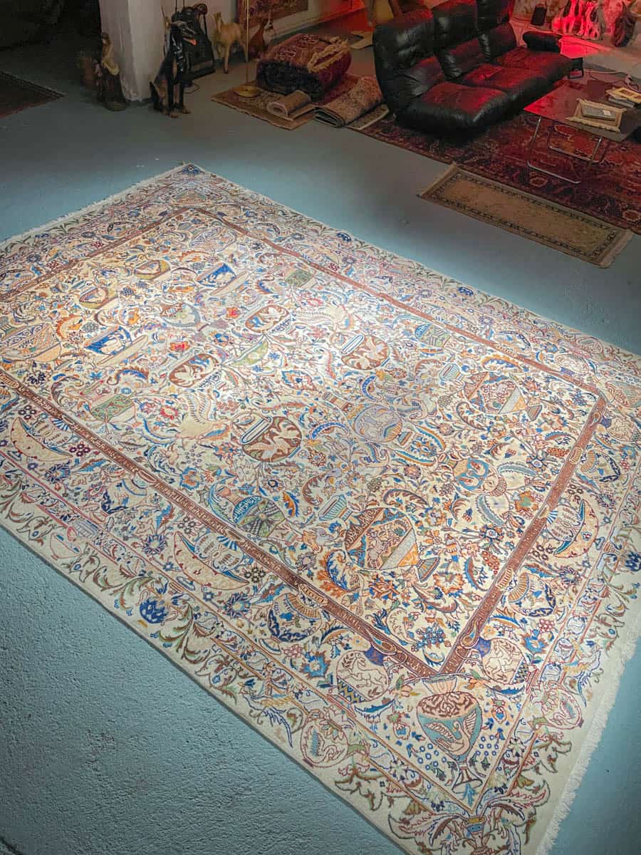 Tämä matto sijaitsee Galleriallamme osoitteessa Kankurinkatu 7, Punavuori – jos haluat tulla katsomaan sitä paikan päälle, sovithan näytön viestitse tai puhelimitse.