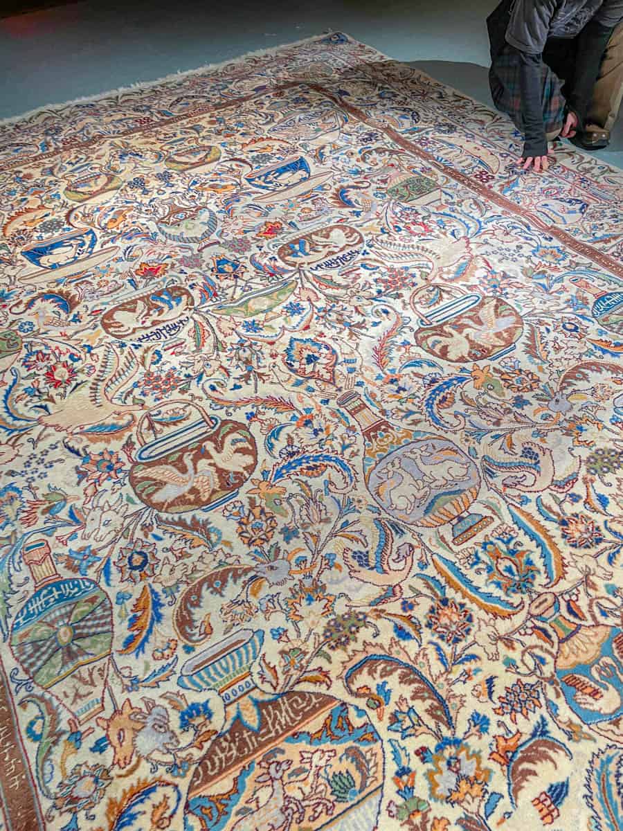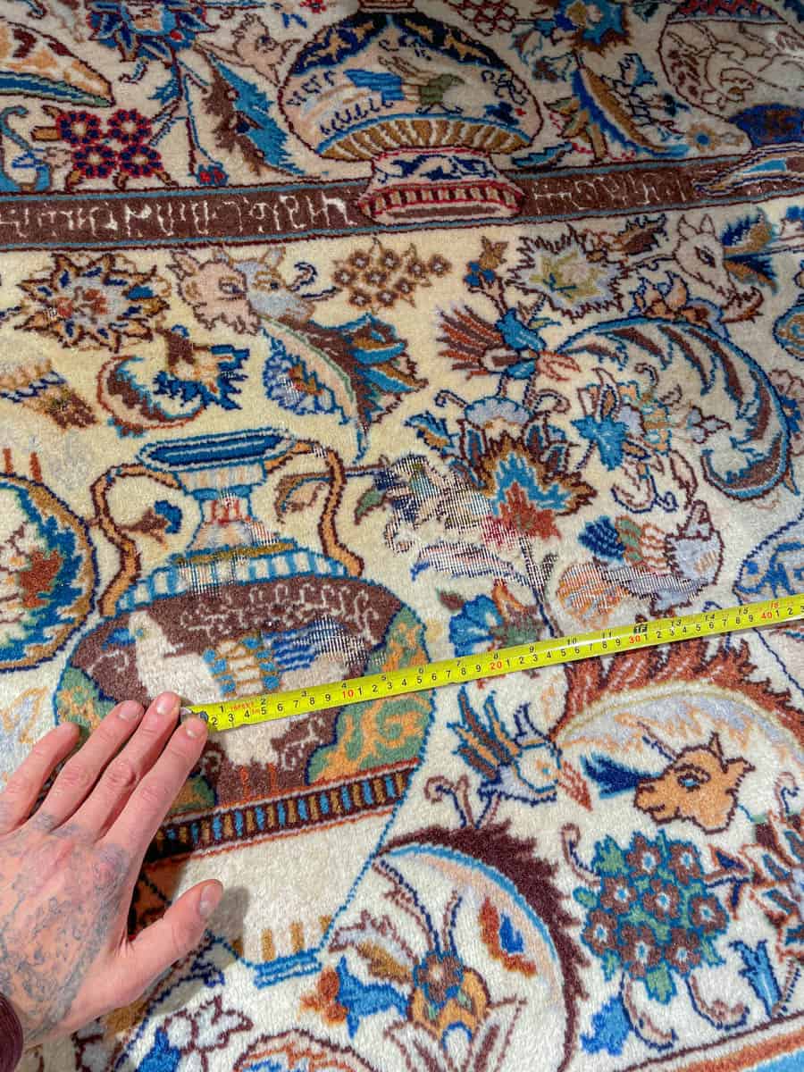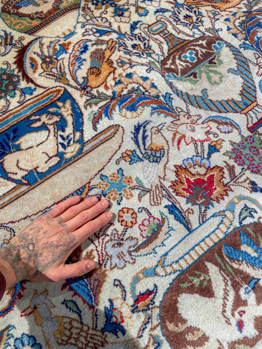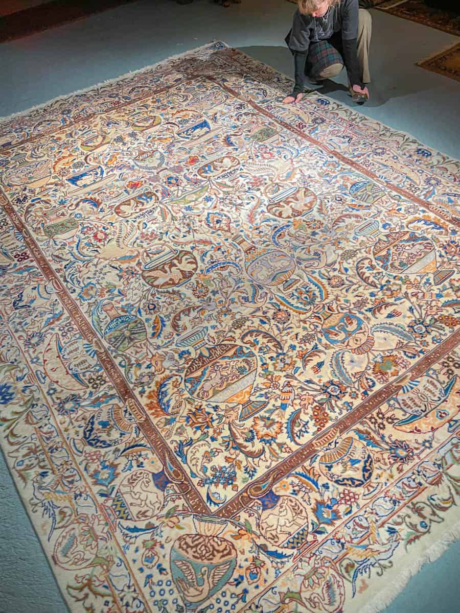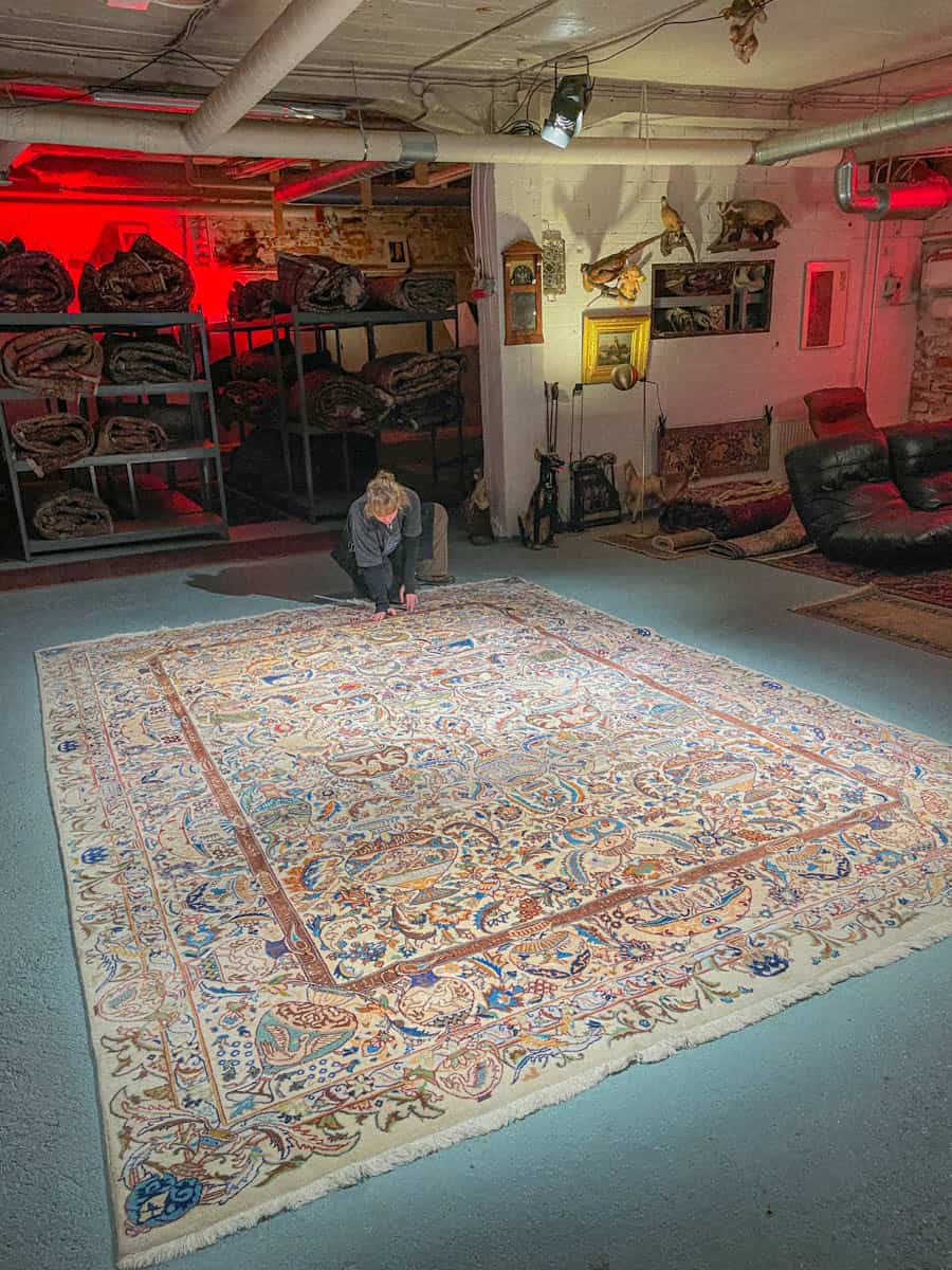 Tämä matto sijaitsee Galleriallamme osoitteessa Kankurinkatu 7, Punavuori – jos haluat tulla katsomaan sitä paikan päälle, sovithan näytön viestitse tai puhelimitse.