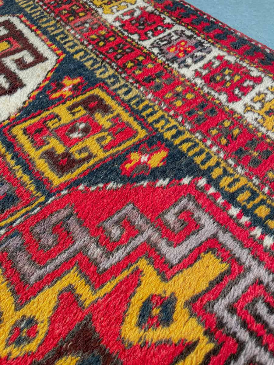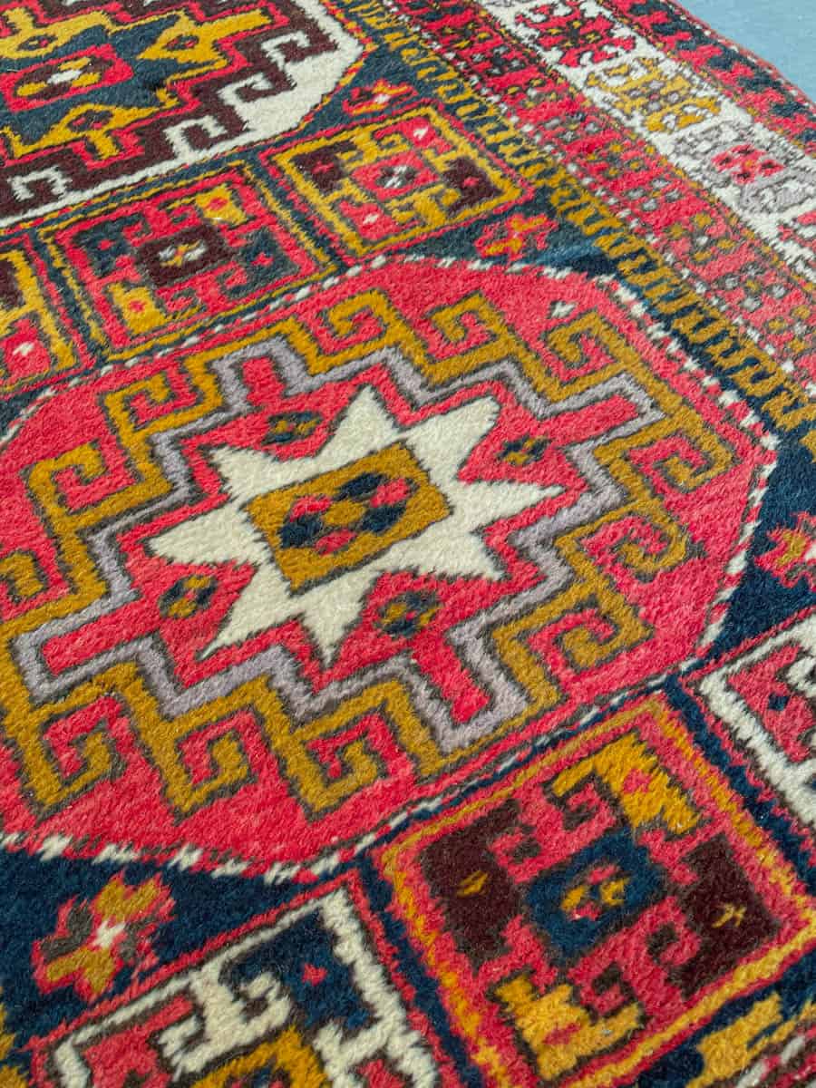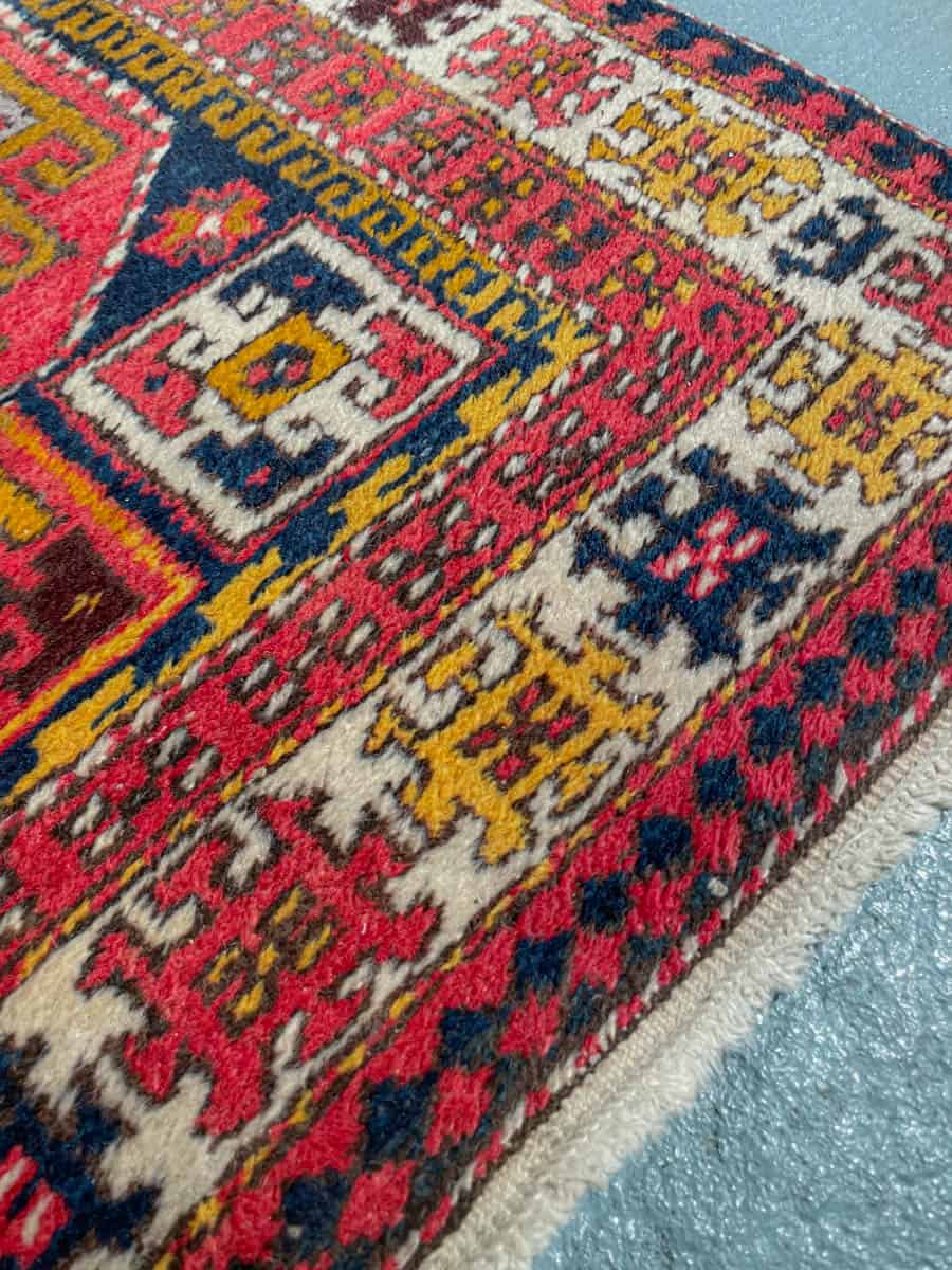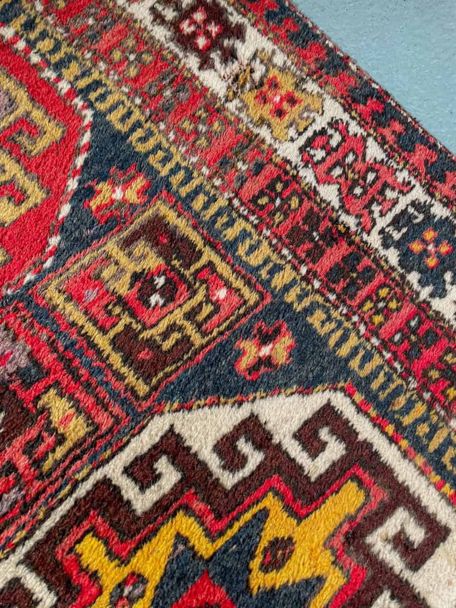 Tämä matto sijaitsee Galleriallamme osoitteessa Kankurinkatu 7, Punavuori – jos haluat tulla katsomaan sitä paikan päälle, sovithan näytön viestitse tai puhelimitse.