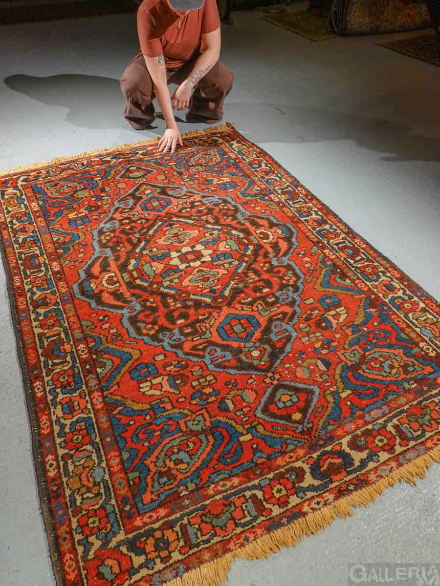 Tämä matto sijaitsee Galleriallamme osoitteessa Kankurinkatu 7, Punavuori – jos haluat tulla katsomaan sitä paikan päälle, sovithan näytön viestitse tai puhelimitse.