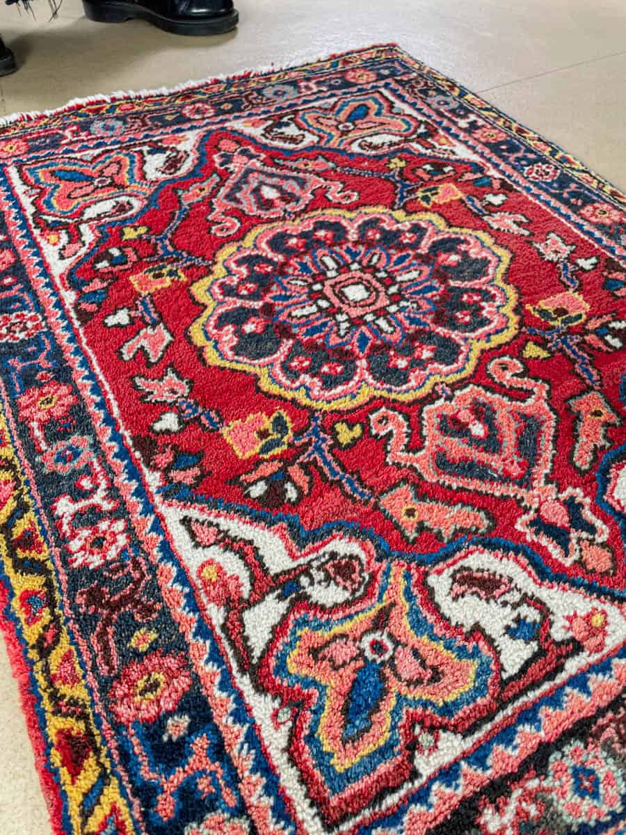 Perinteinen persialainen Hamadan-matto, jossa sievä medaljonkikuvio ja klassinen väriteema.