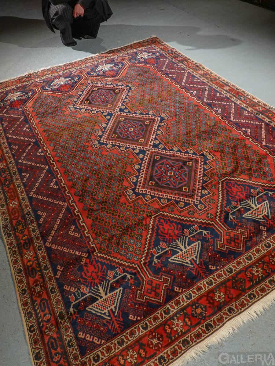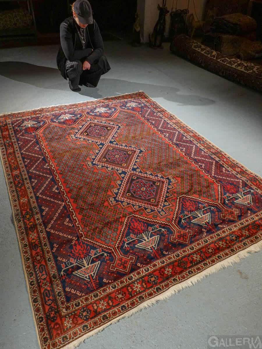 Tämä matto sijaitsee Galleriallamme osoitteessa Kankurinkatu 7, Punavuori – jos haluat tulla katsomaan sitä paikan päälle, sovithan näytön viestitse tai puhelimitse.