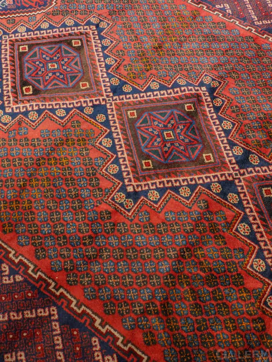 Tyylikäs persialainen Afshar yksityiskohtaisella geometrisella kuvioinnilla ja kauniilla väreillä. Käsinsolmittu villasta.