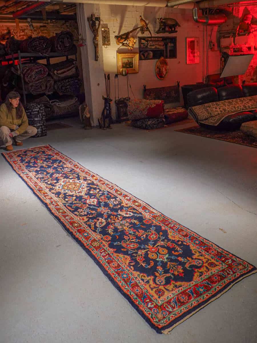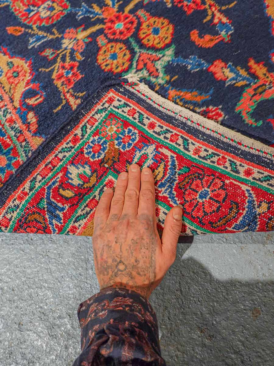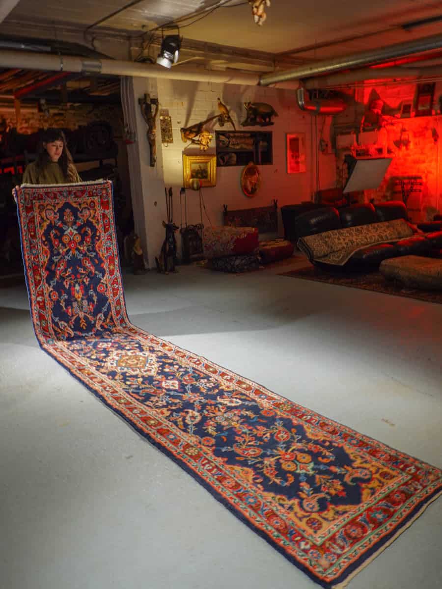 Tämä matto sijaitsee Galleriallamme osoitteessa Kankurinkatu 7, Punavuori – jos haluat tulla katsomaan sitä paikan päälle, sovithan näytön viestitse tai puhelimitse.