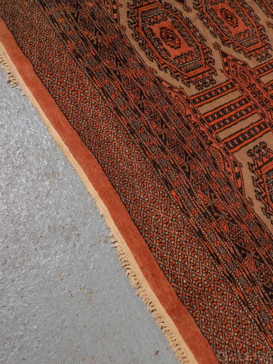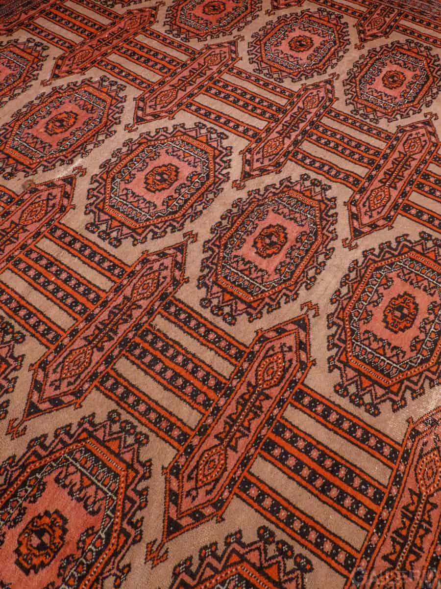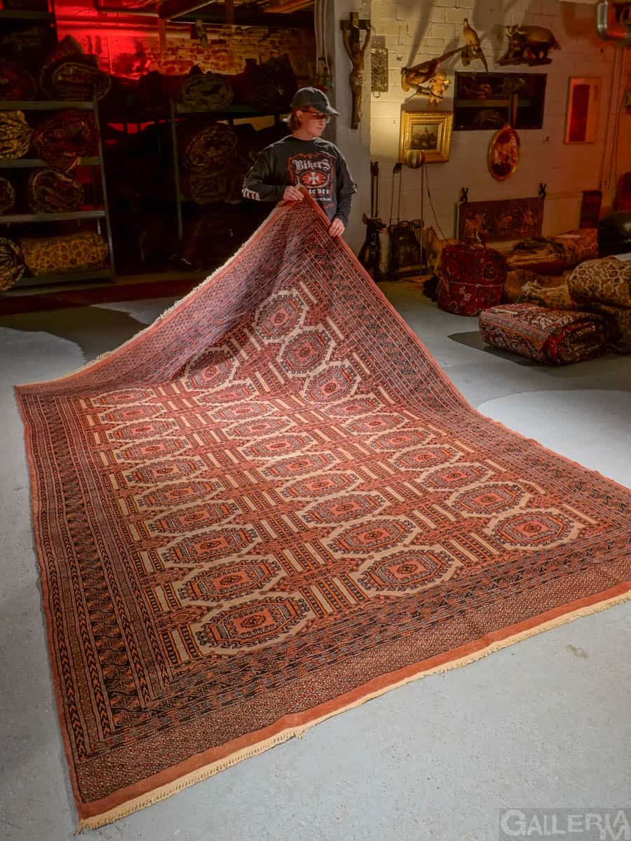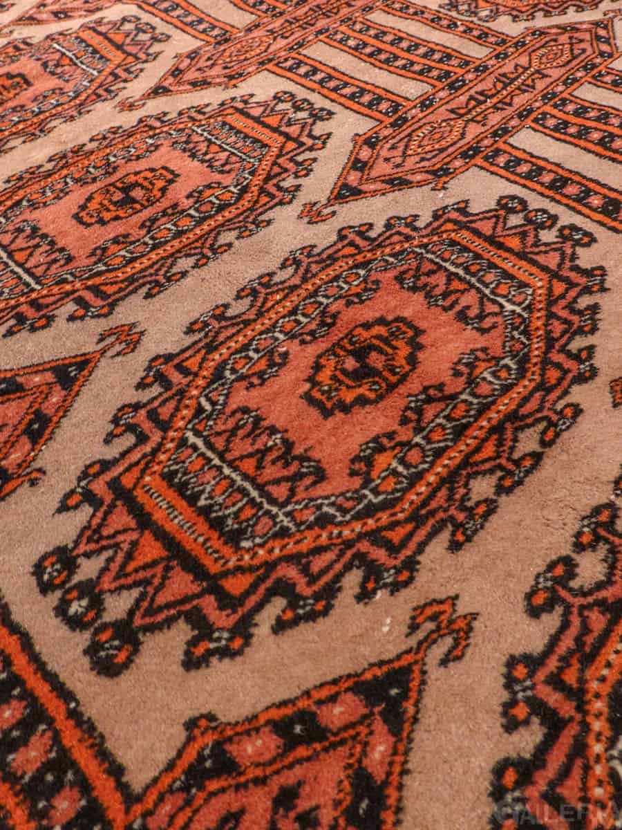 Käsinsolmittu villasta perinteiseen persialaiseen Buhara-tyyliin. Upea maanläheinen väripaletti.