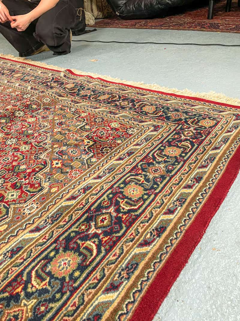 Tämä matto sijaitsee Galleriallamme osoitteessa Kankurinkatu 7, Punavuori – jos haluat tulla katsomaan sitä paikan päälle, sovithan näytön viestitse tai puhelimitse.