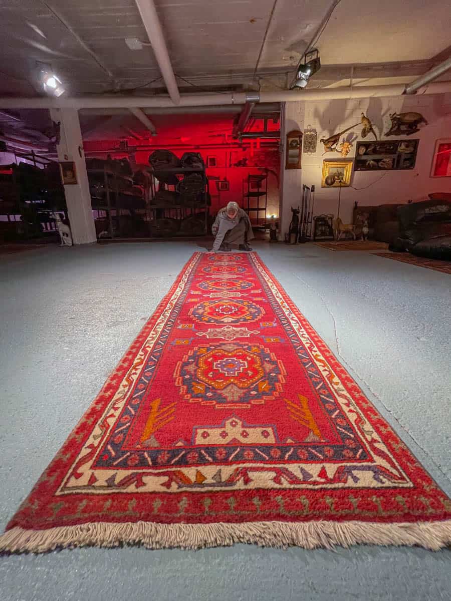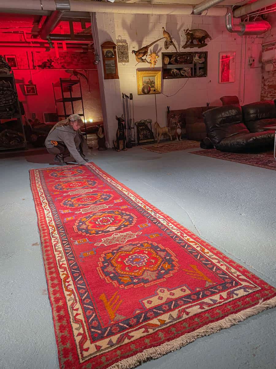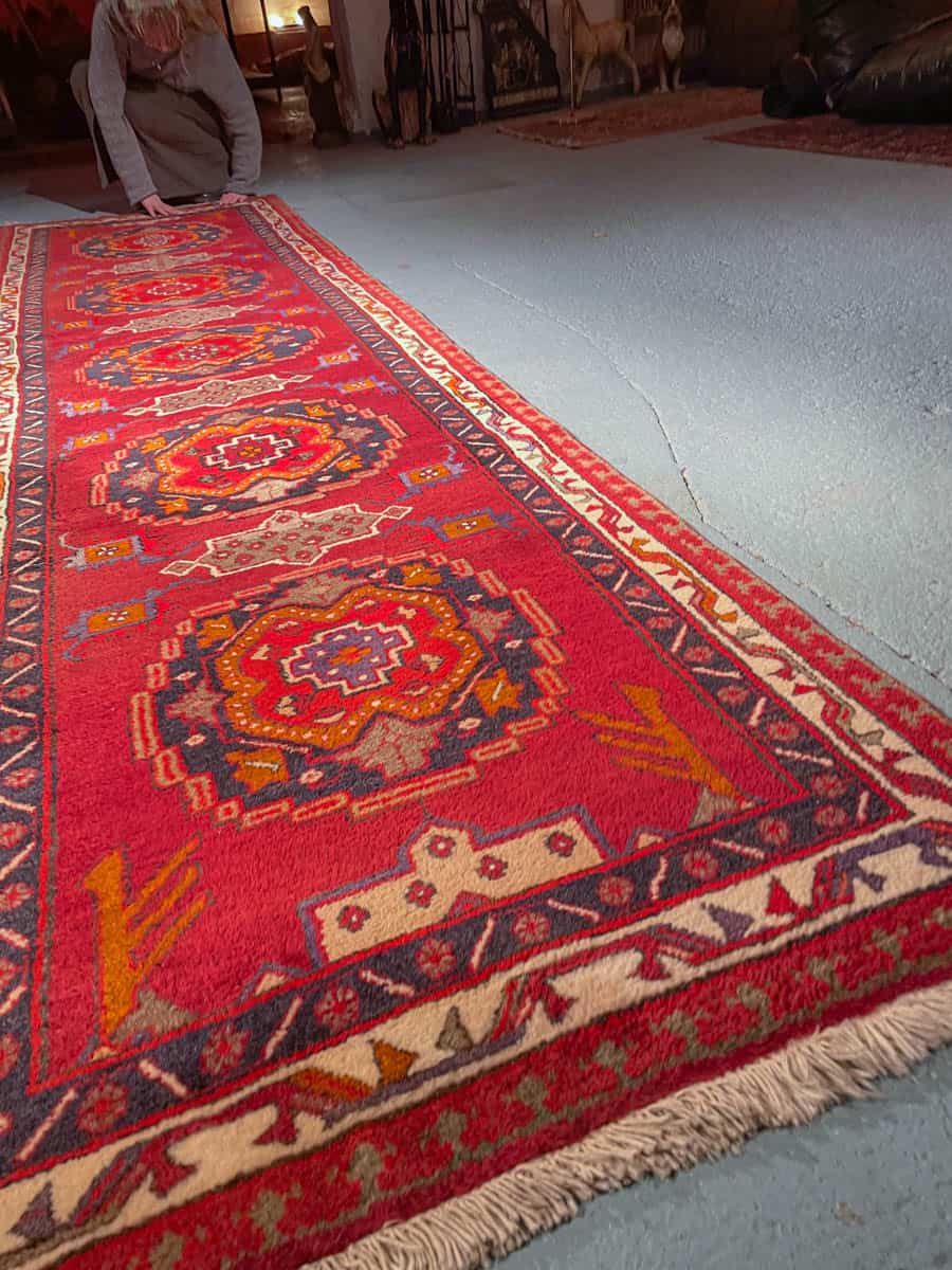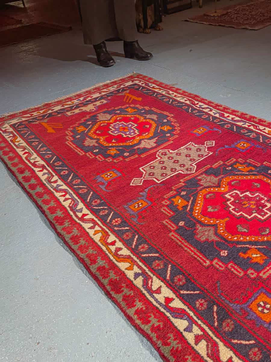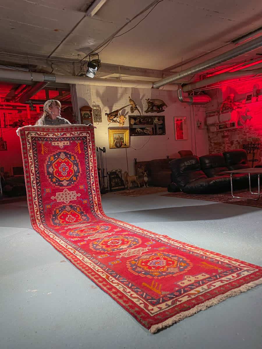 Tämä matto sijaitsee Galleriallamme osoitteessa Kankurinkatu 7, Punavuori – jos haluat tulla katsomaan sitä paikan päälle, sovithan näytön viestitse tai puhelimitse.